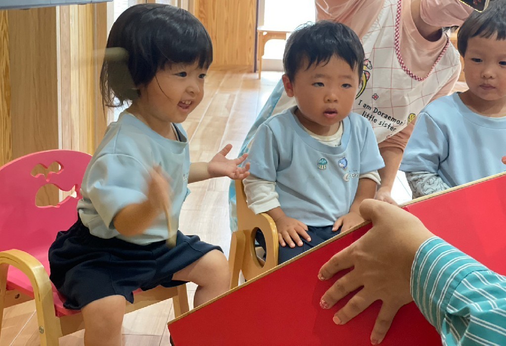 今日はリトミックがありました🎶絵本読み聞かせでは、内容を覚えていて講師の呼びかけにすぐ反応しているお友だちもいましたよ📙