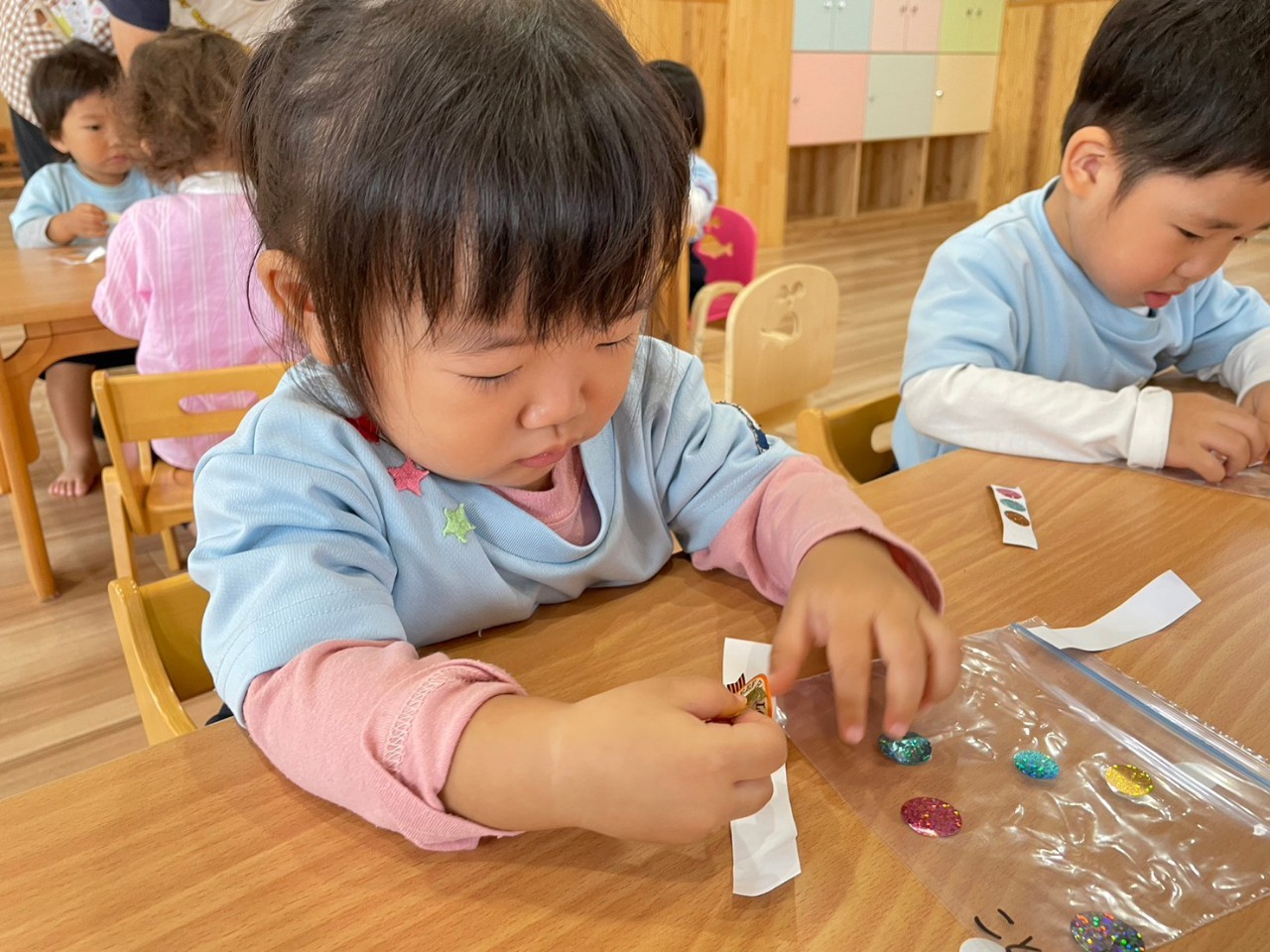 好きな模様を書いたりシールを貼ったり、とても集中していました✨