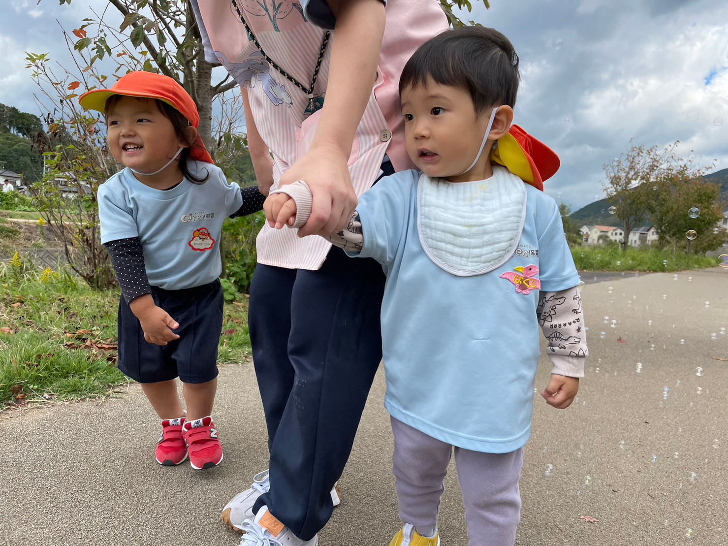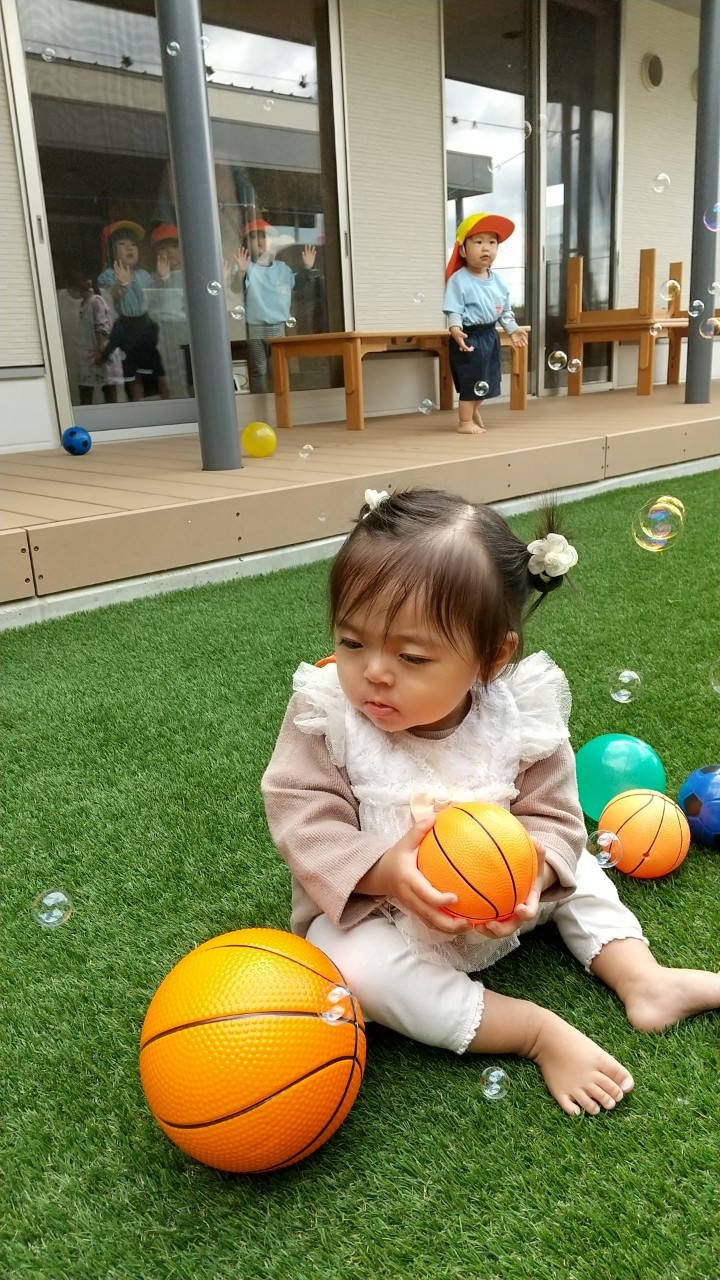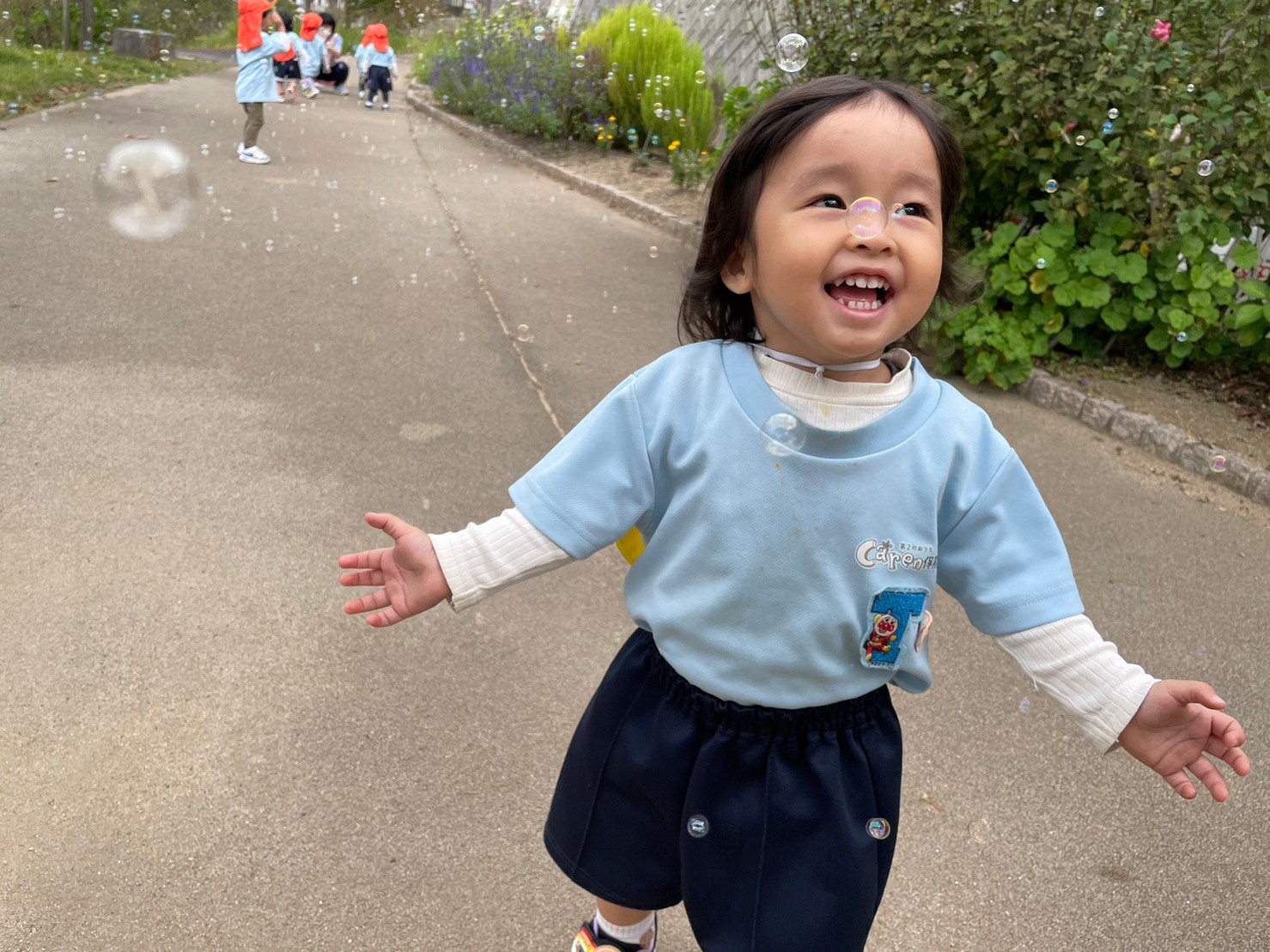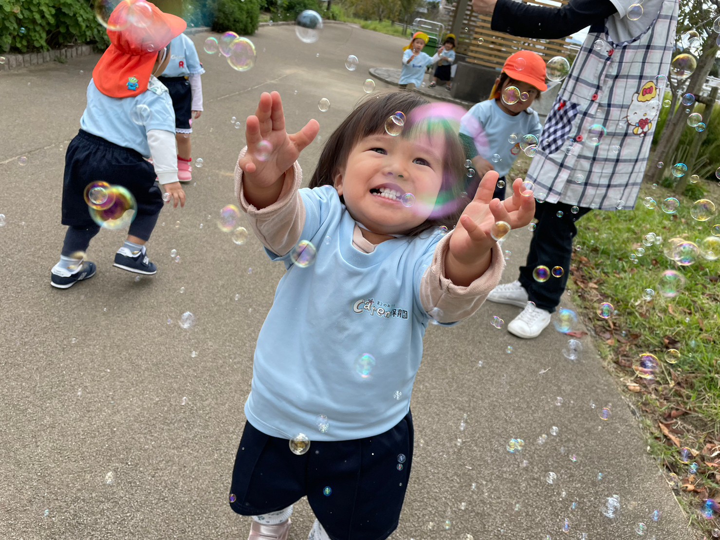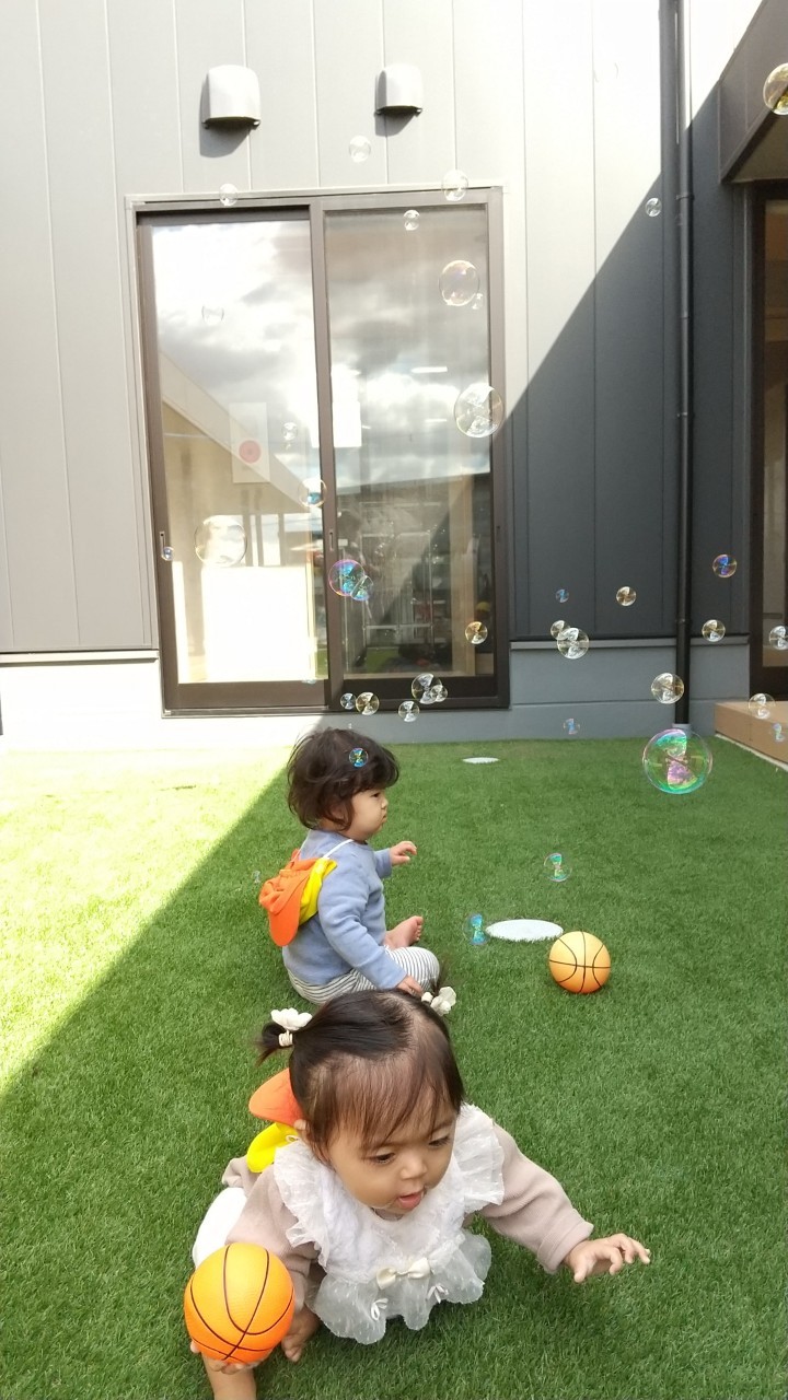 シャボン玉に目を輝かせて追いかけたり、両手を上にのばしてつかもうとするかわいい仕草が見られました🥰