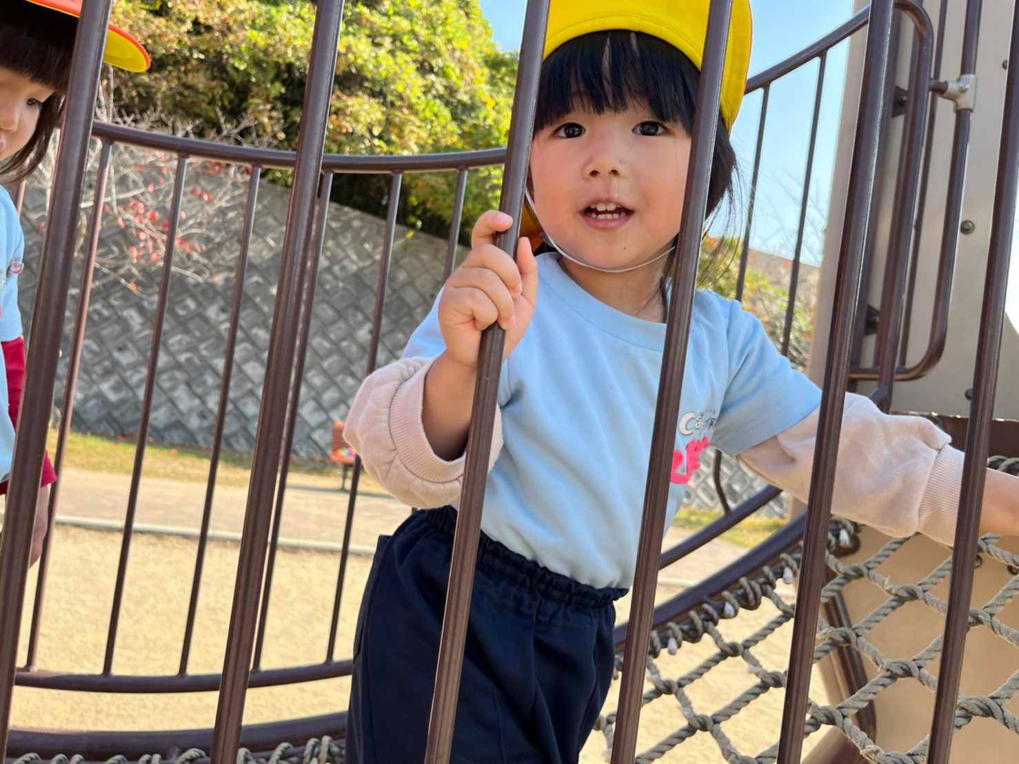 公園では、保育者が滑り台を何度も滑ったり、ロープ渡りを保育者と一緒に楽しんでいました🥹
