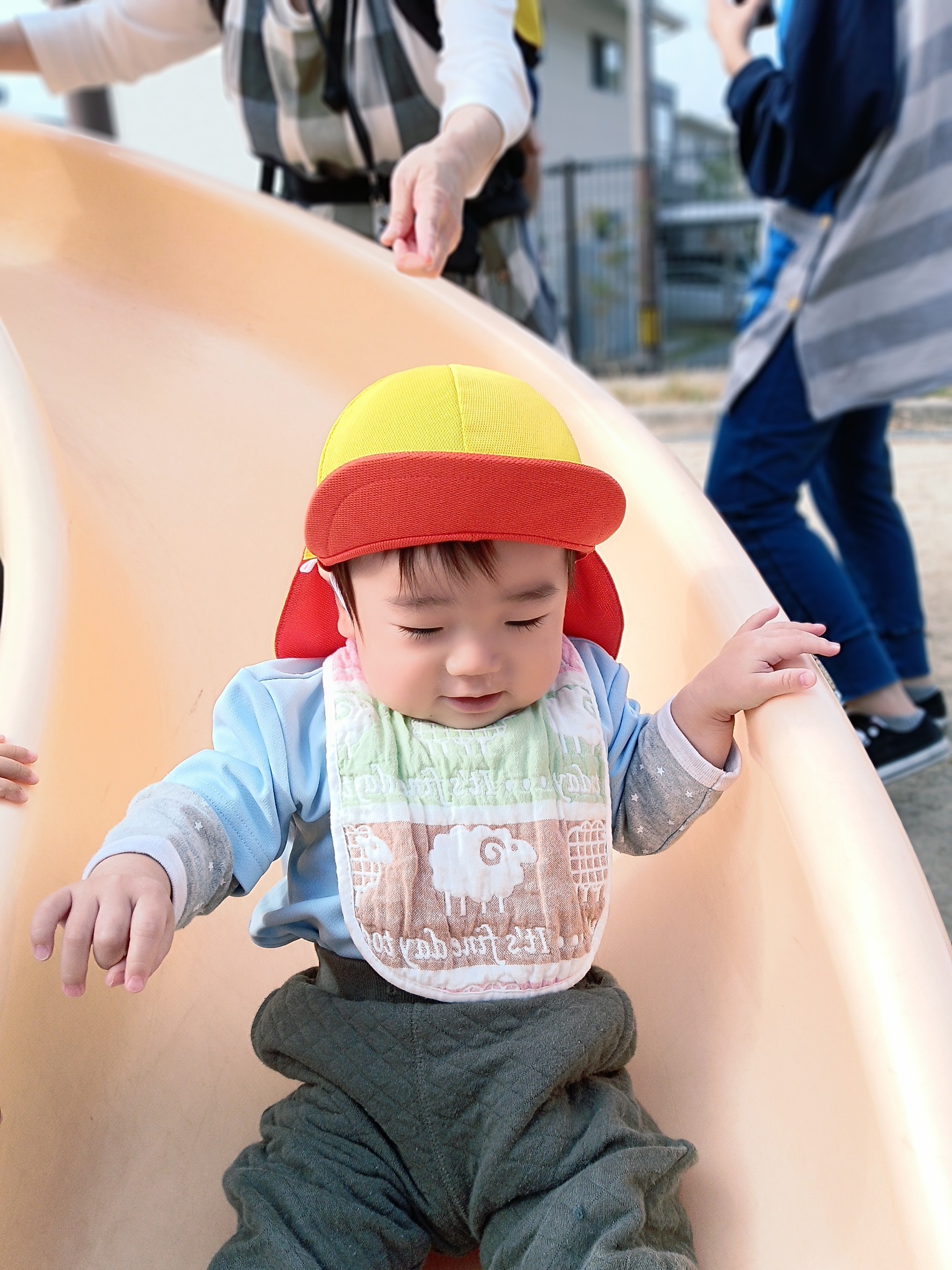 月齢の高い子は、小さな滑り台にもチャレンジし繰り返し遊んだりスプリング遊具に乗ったりと楽しいお散歩になりました🌼