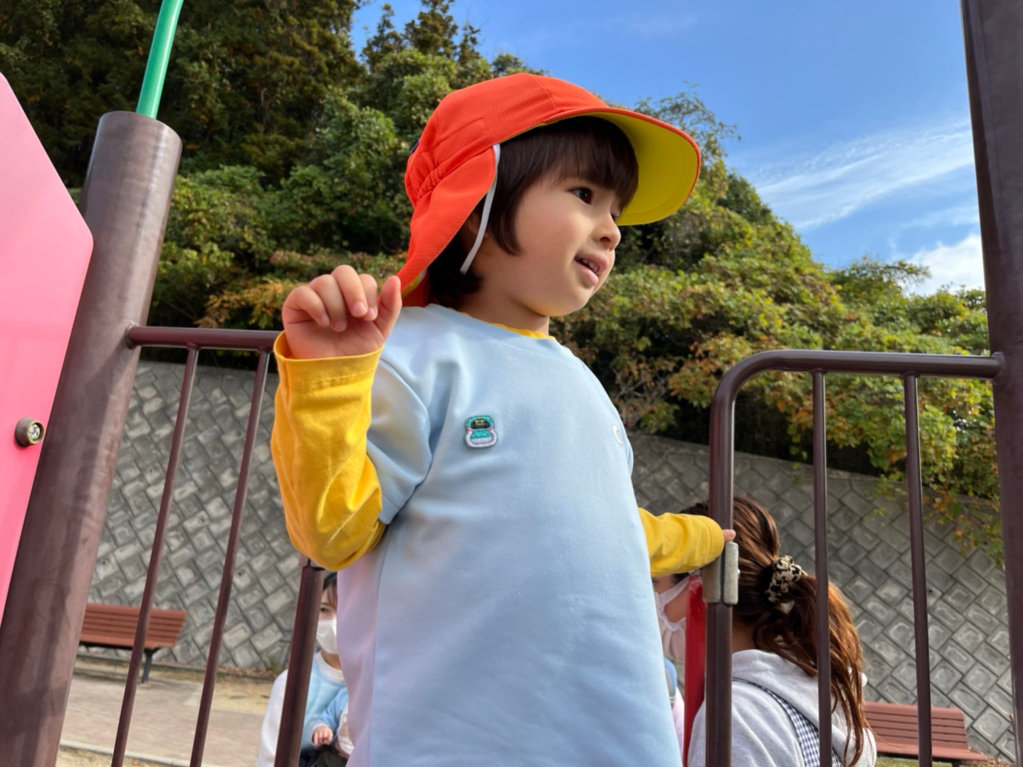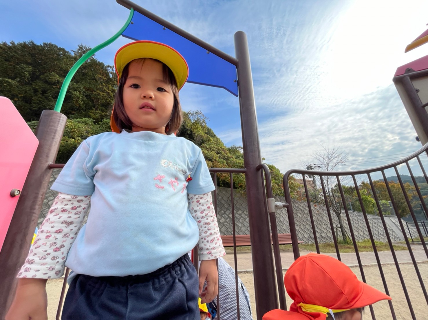 園児同士でロープ渡りをしたり、大きい方の滑り台に挑戦して何度も滑り台を楽しんでいた様子でした☺️