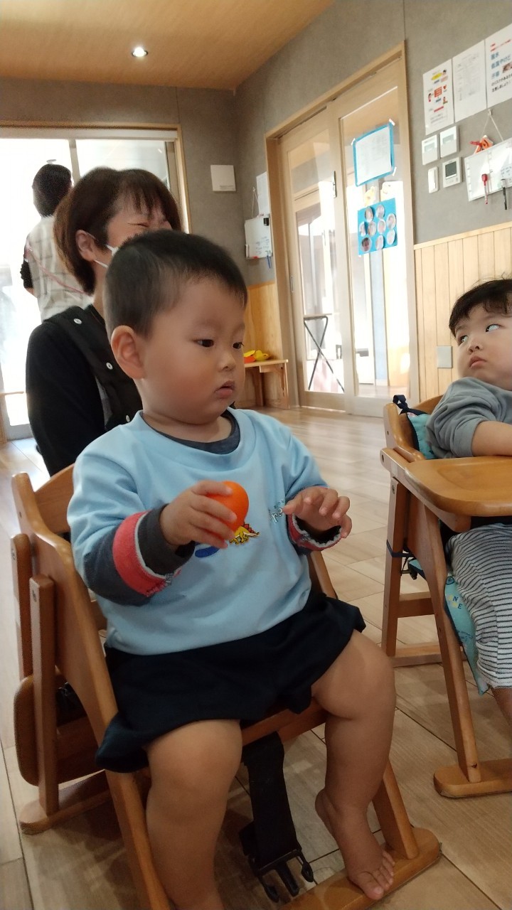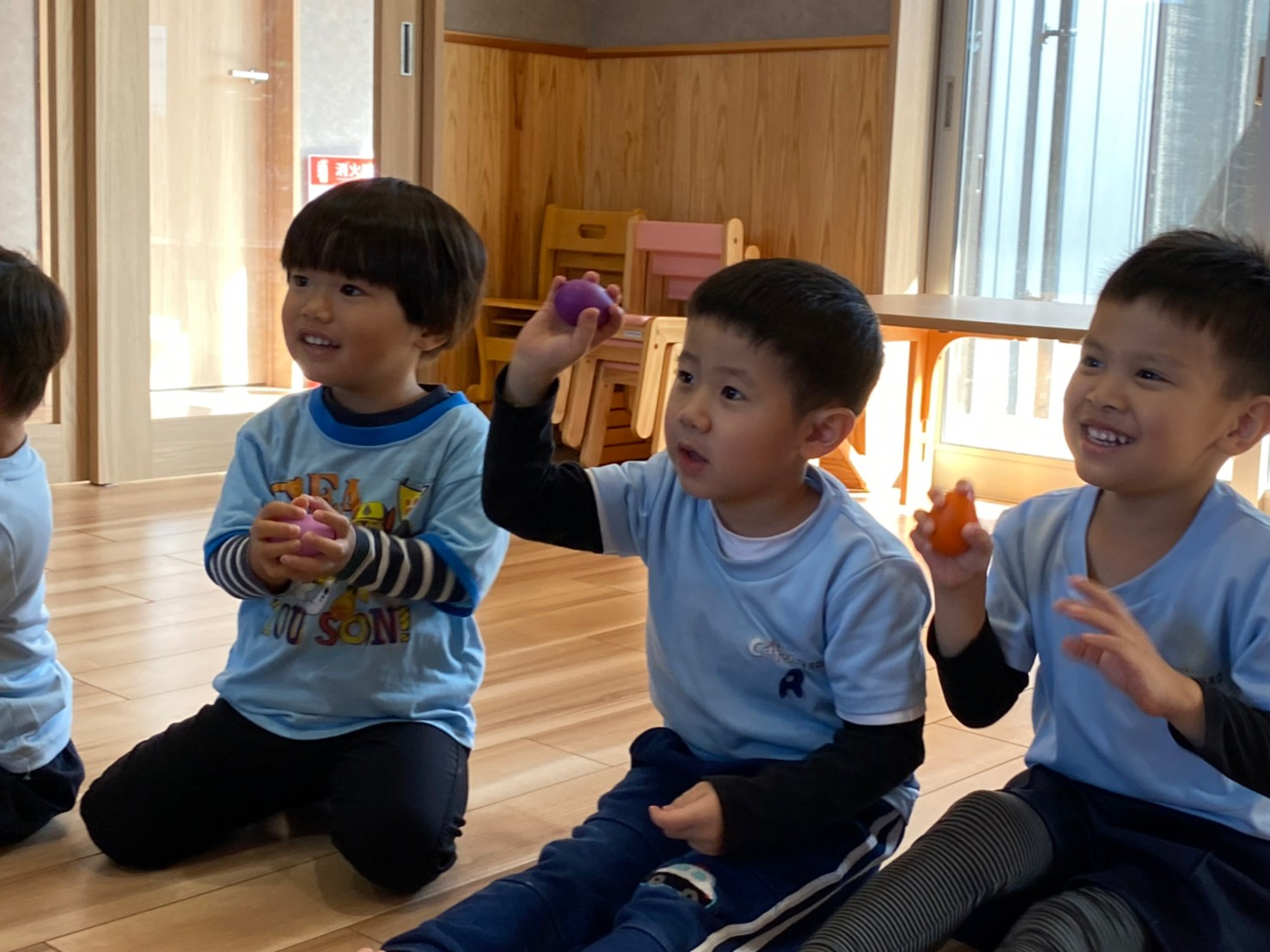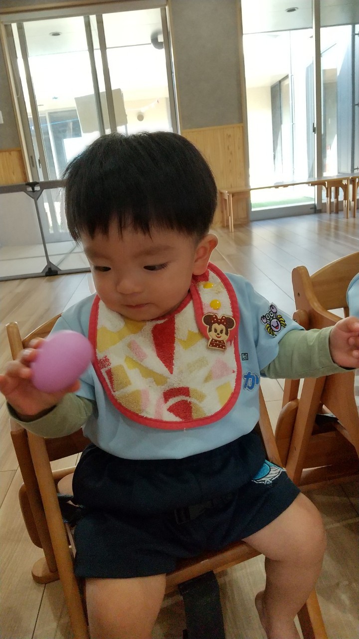 それから、タマゴ型マラカスを両手に握ってシャカシャカ鳴らしてご機嫌でしたよ✨とっても楽しいリトミックでした!✌️