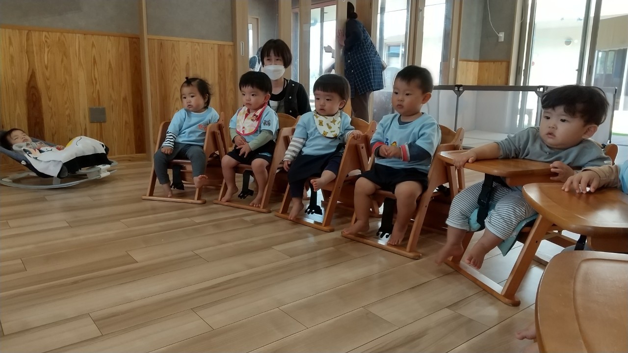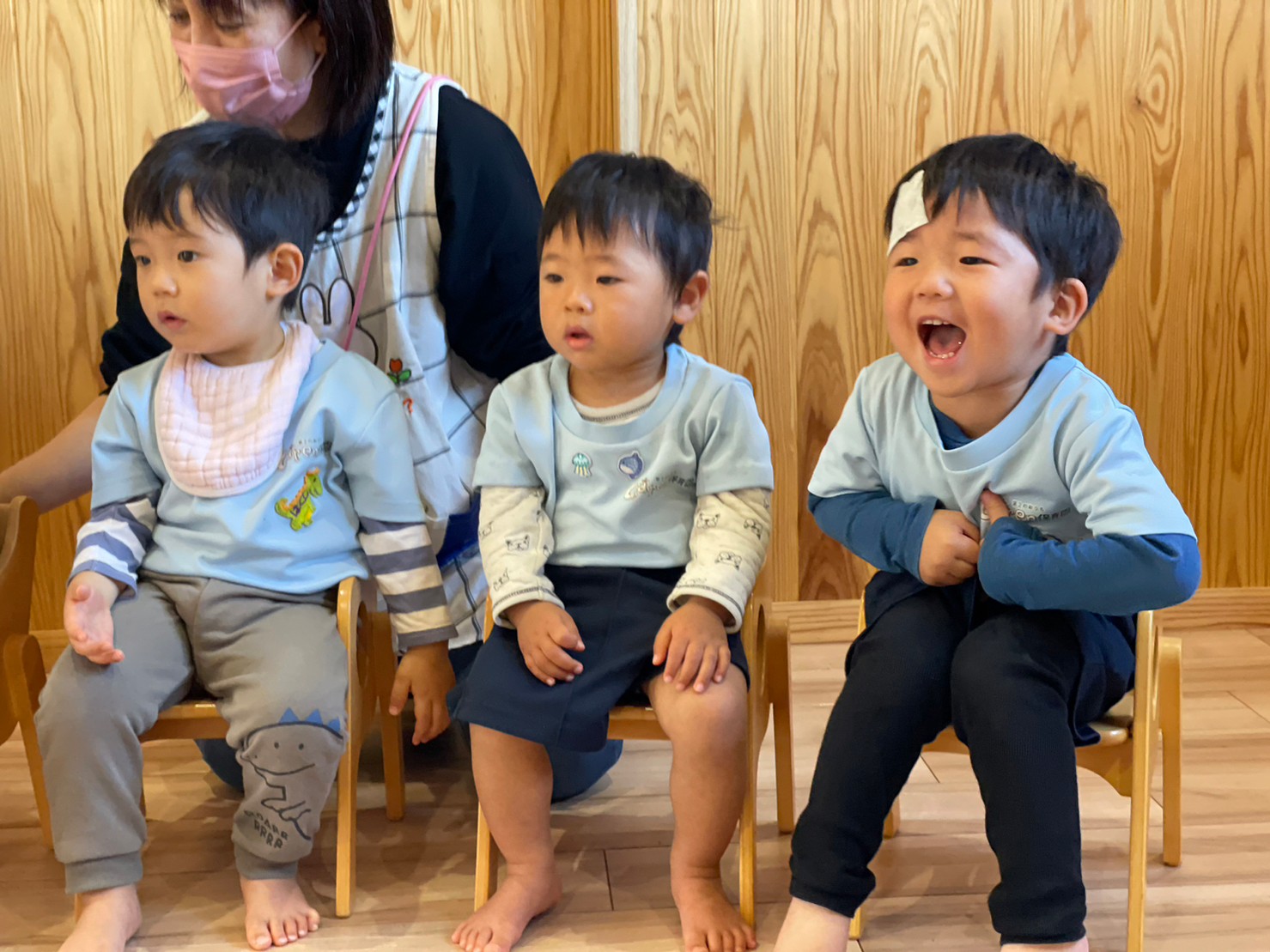 リズム遊びでは、音楽に合わせてマラカスを振ったり、絵本に出てくる動物の名前をリズムに合わせて言ったりと楽しみましたよ😁⭐️