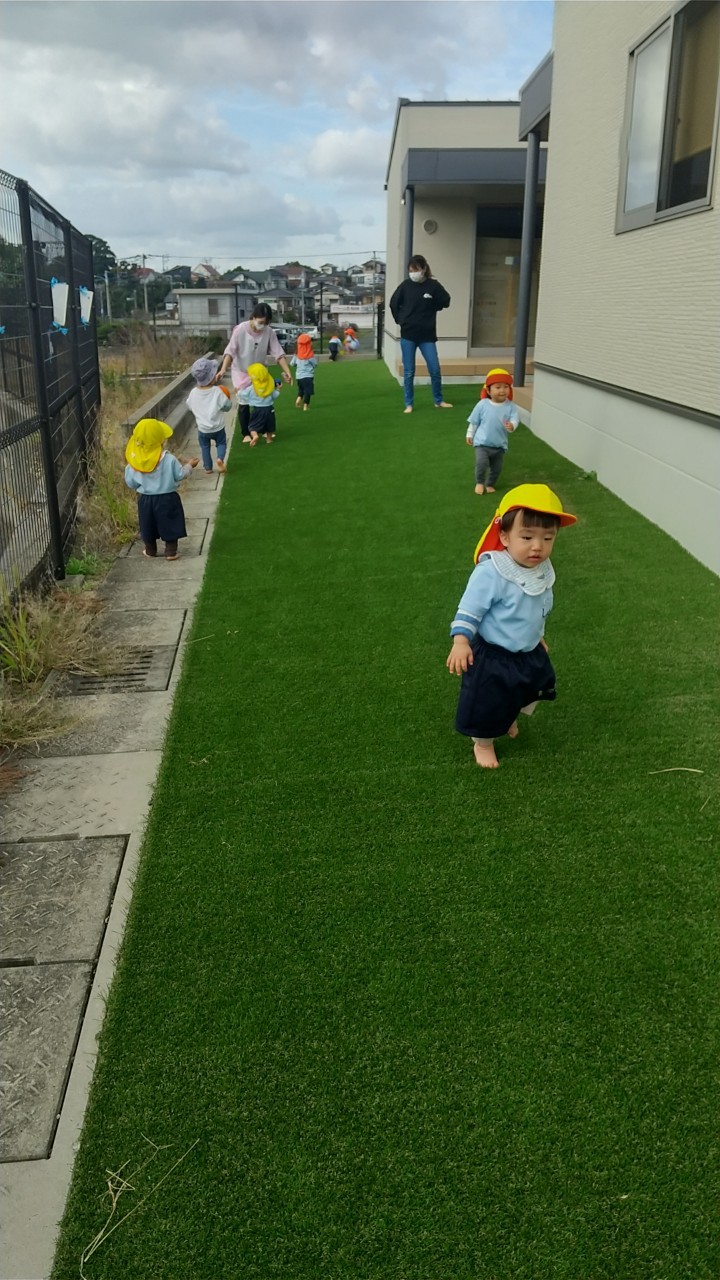 朝は発表会のマラカスの練習をしました🥰その後てくてくロードまで散歩に行って、花壇の花や葉っぱを拾って遊んだり、お友達とお店屋さんのようにして遊びました🍂帰りは1人ずつ階段を上る練習をして、園までの少しの距離をお友達同士手を繋いで歩くことができました😆💕ぱんだ組🐼