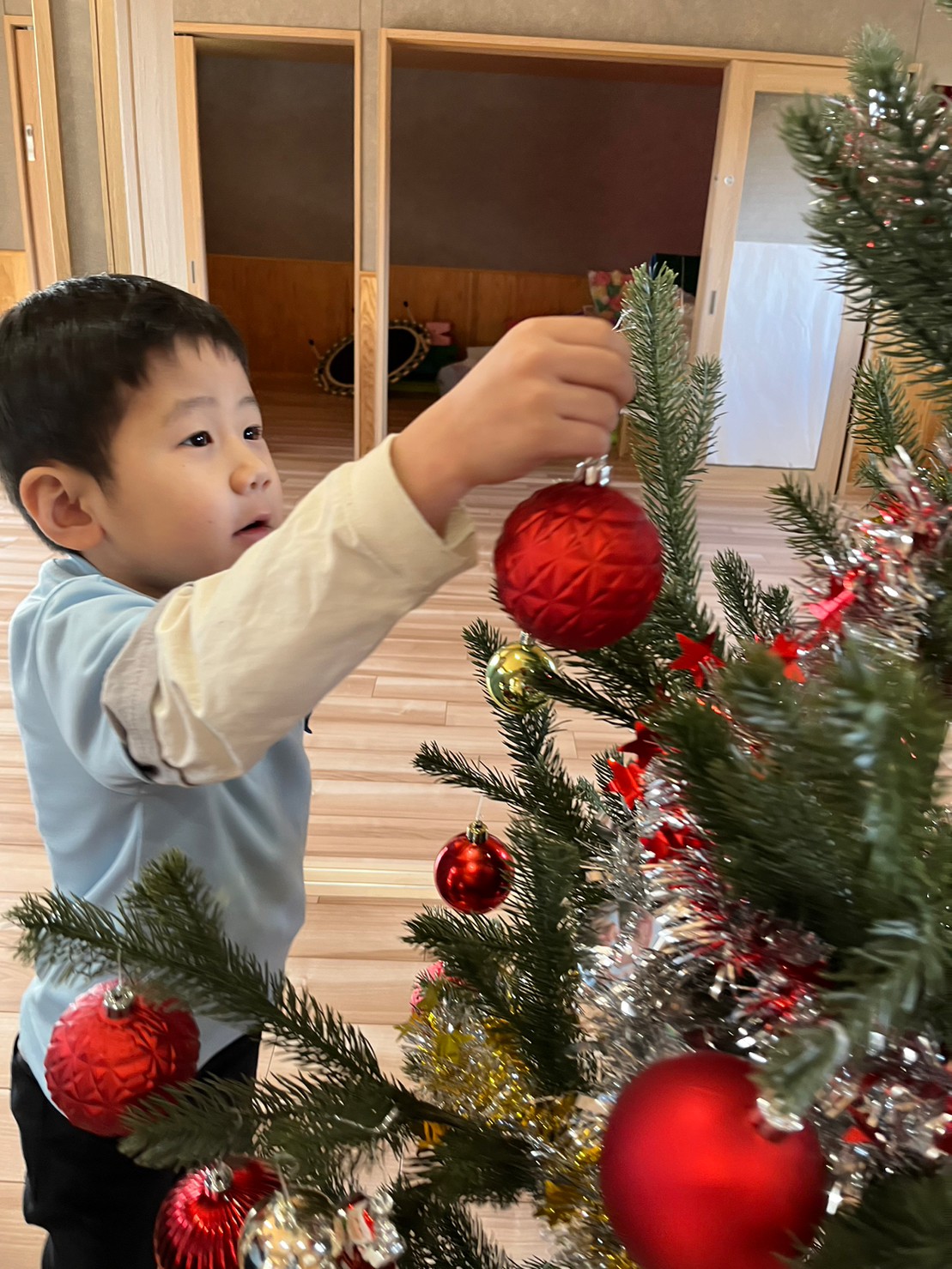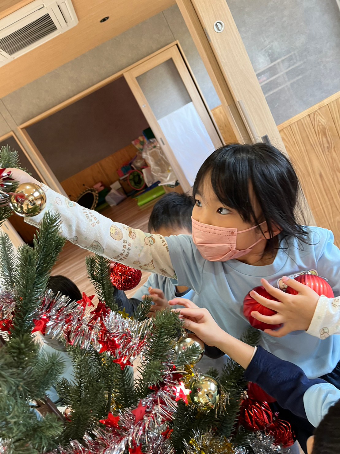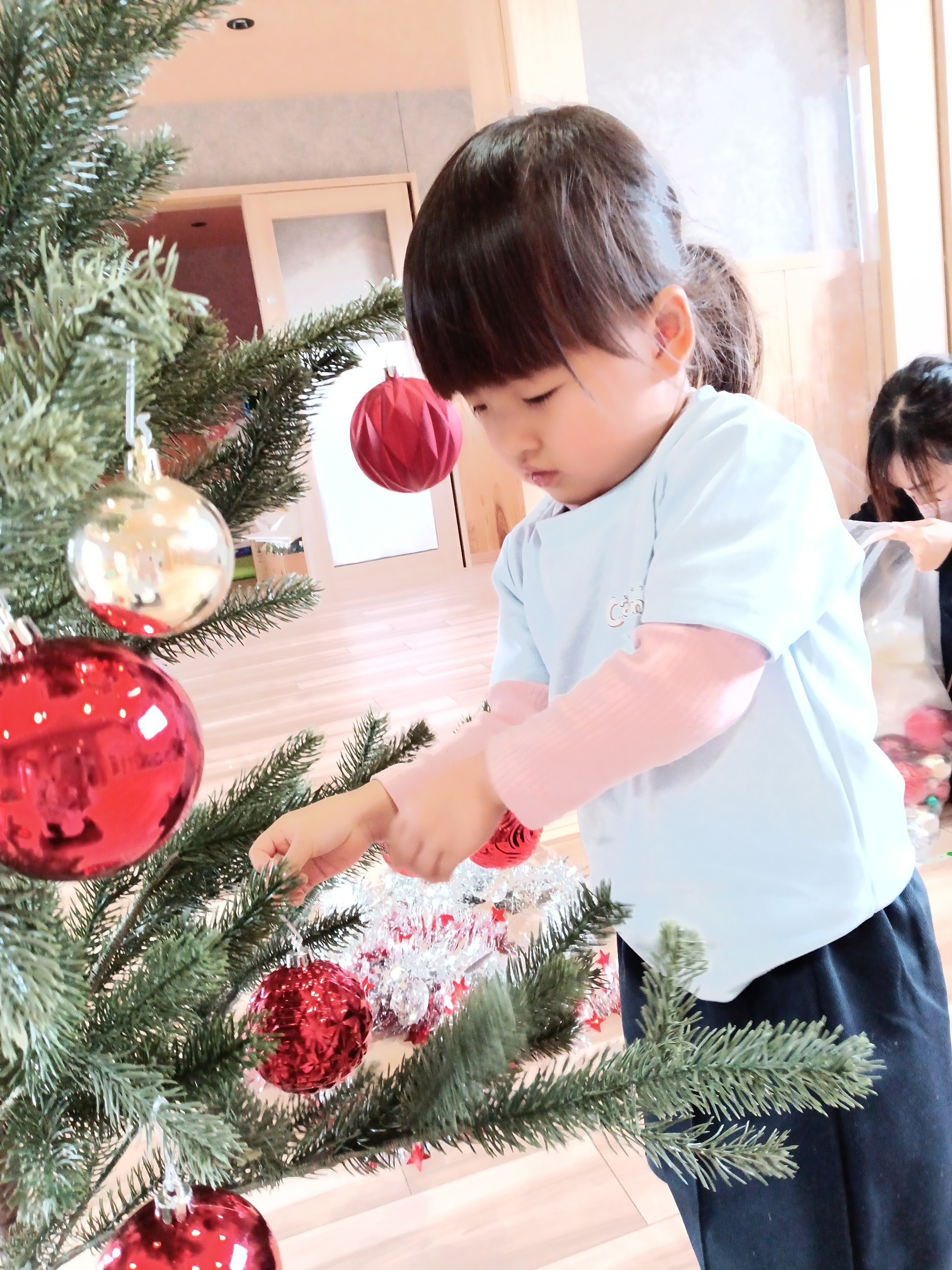 クリスマスソングを口ずさみながら、楽しそうに飾り付けをする子や、「あーでもない、こーでもない、、」とバランスを見ながら飾り付けをする子など、それぞれが楽しみながら飾り付けをしている様子でしたよ🎅❤️