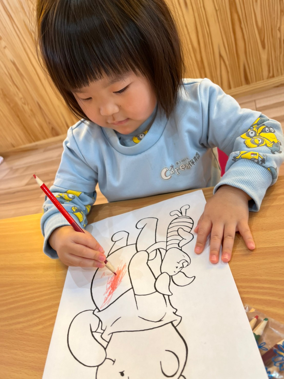 自分たちの好きな色を選んで、線からはみ出さないように丁寧に色を塗って塗り絵を楽しんでいました✨