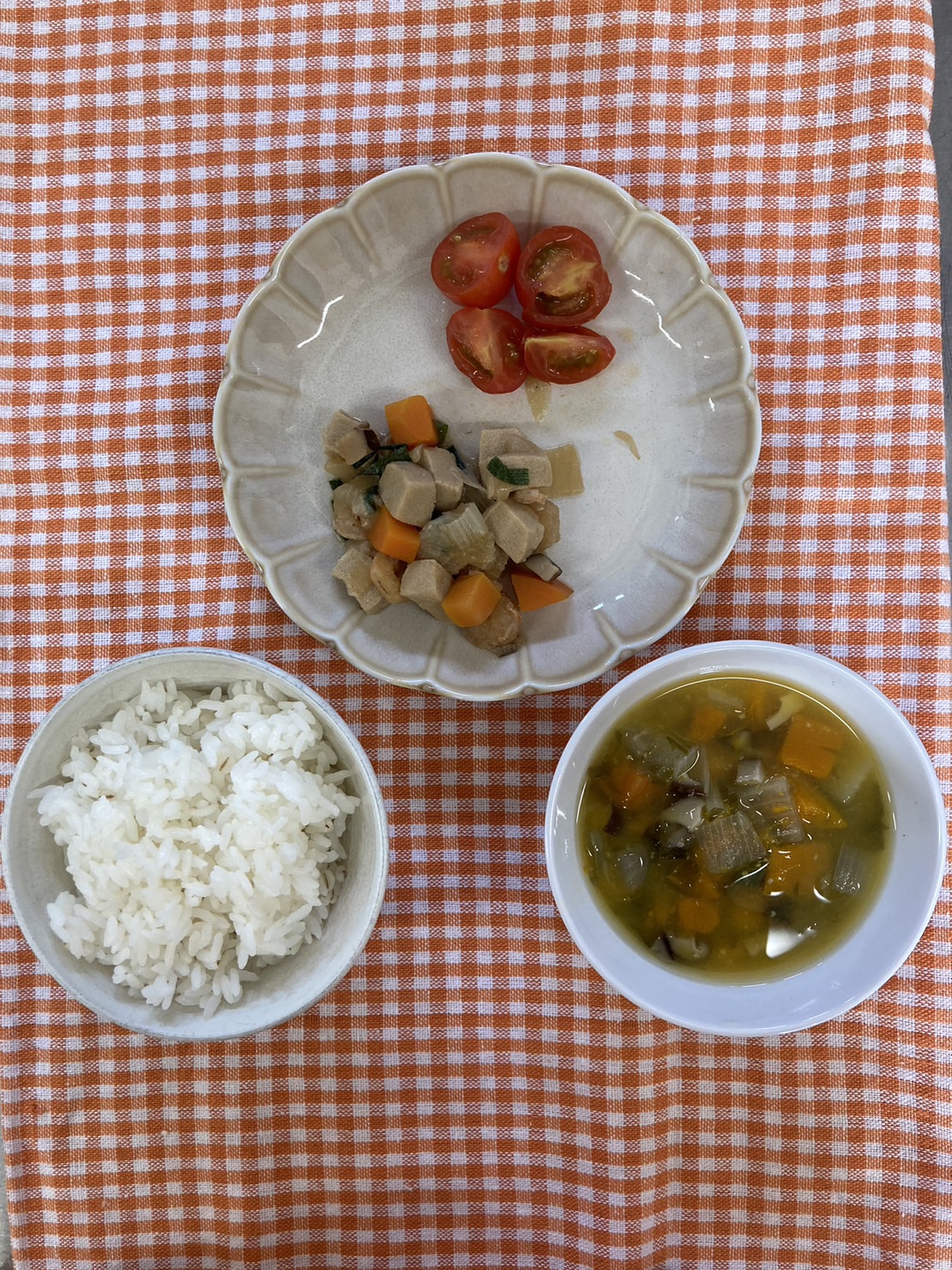たくさん遊んだ後は、美味しい給食😋ぺろりと食べていました❤️【くりえいと園の今日の給食です】