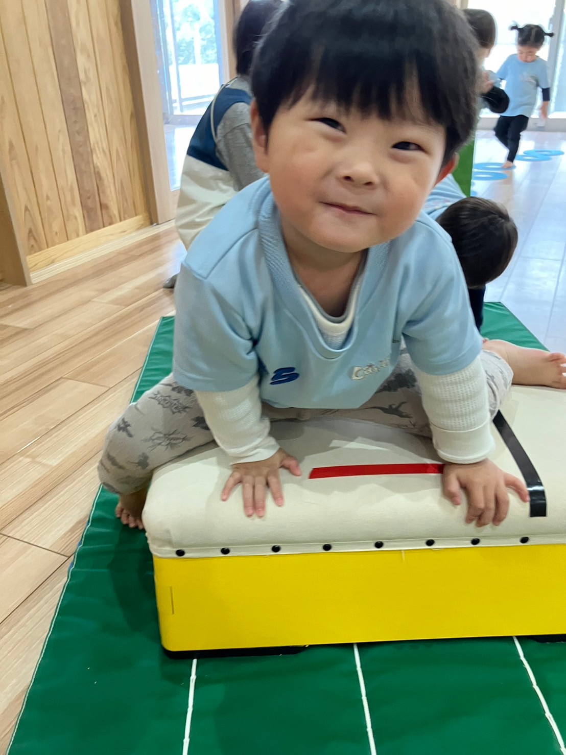 その後、運動遊びをしていきました😊サーキットのように滑り台やバランス、輪くぐり、両足ジャンプなどを1人ずつしていきましたよ😍待つことも少しずつ覚え、他のお友達がしている時は応援してあげる姿も見られるようになりましたよ😊♡ぱんだ組🐼