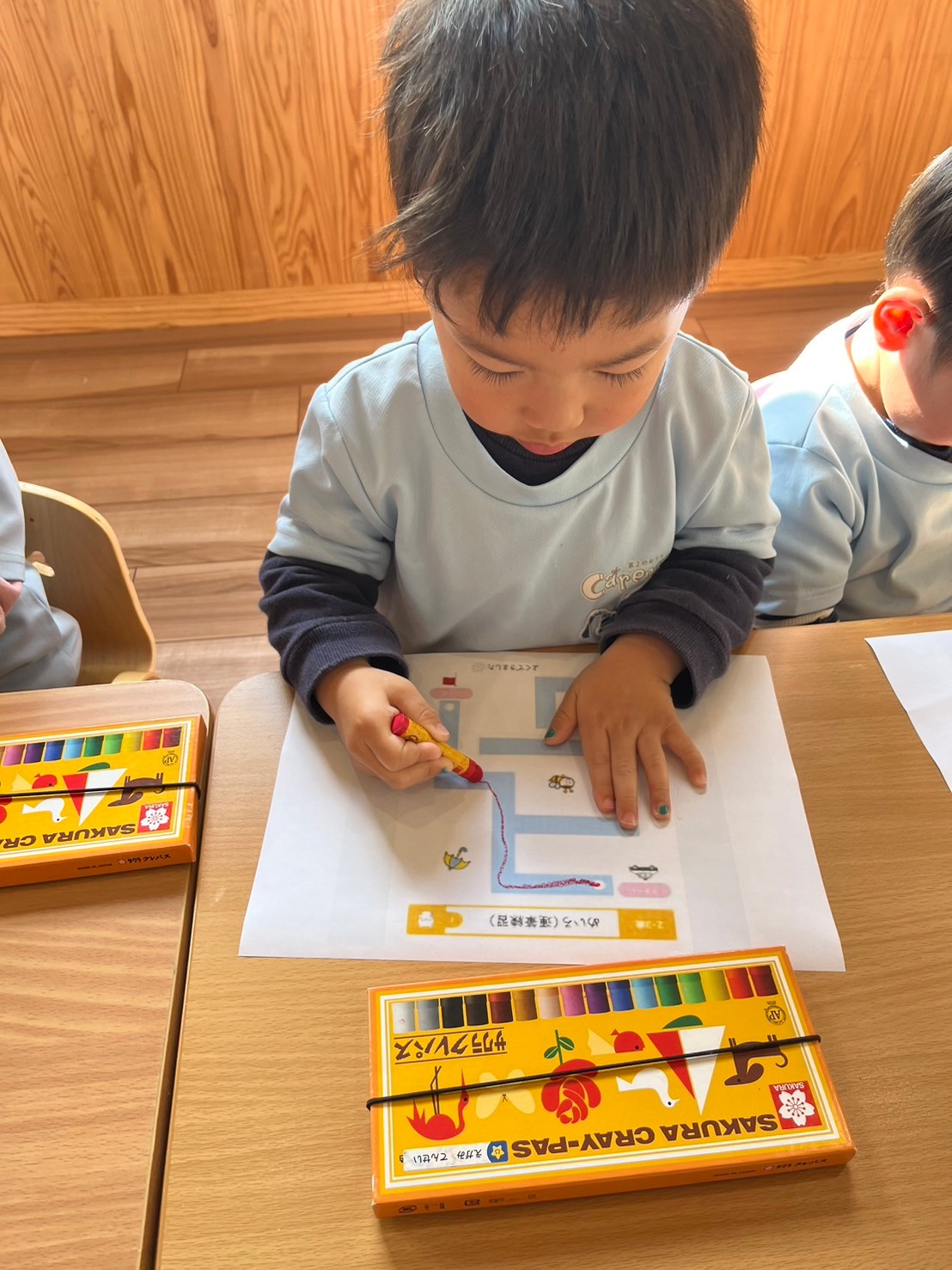 その後めいろもしてみました✏️保育者の説明をよく聞いてスタートからゴールまで行けました🩷くりえいと うさぎ、こあら、きりん