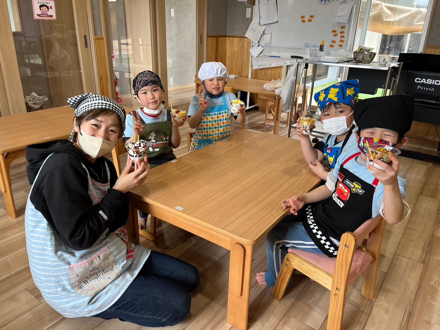 事前にきりん組さんは「フルーツパフェが作りたい!」とのことだったので、みんなでフルーツパフェ作りを楽しみましたよ💖