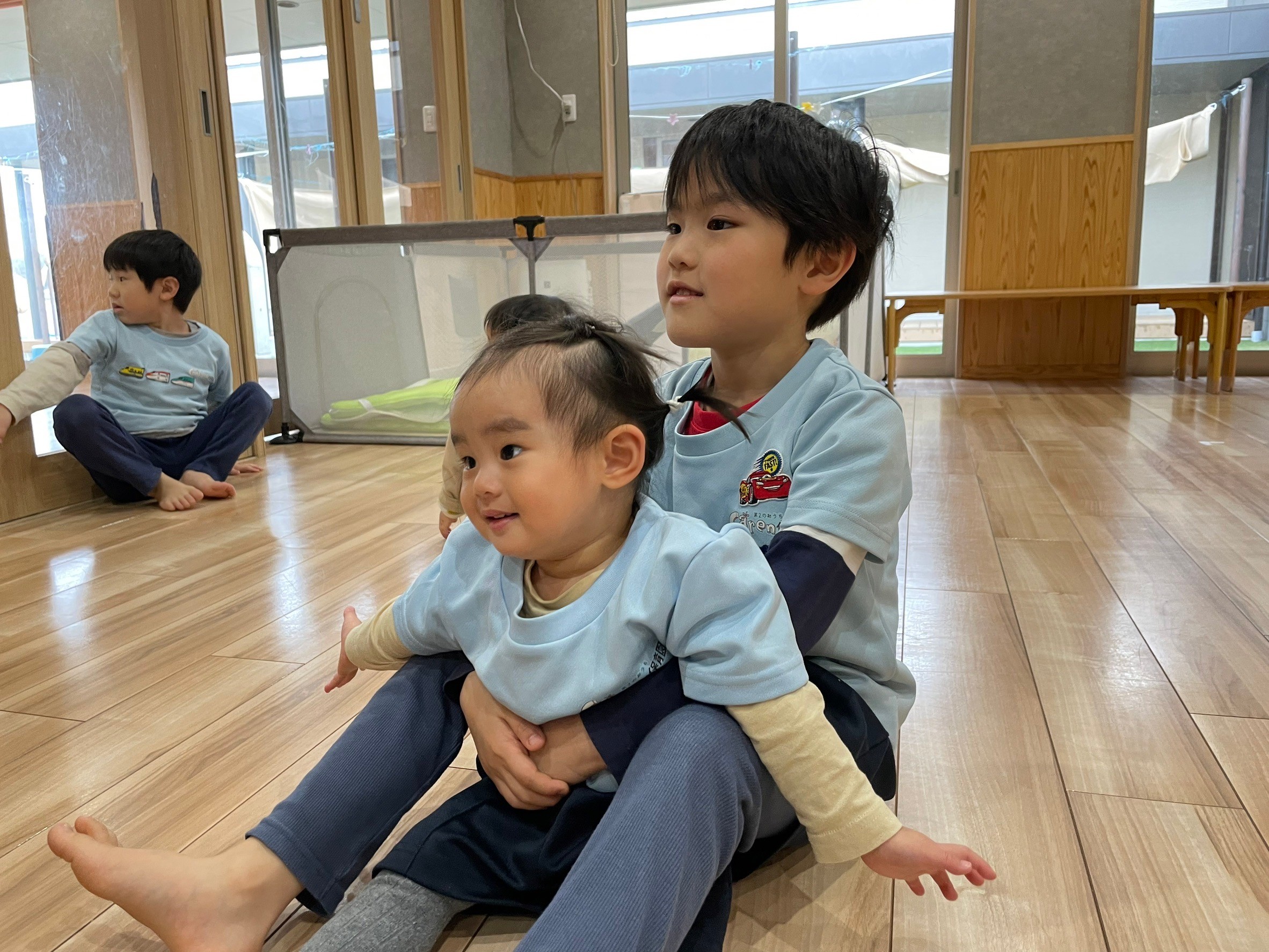 今日は朝の会の時間、ひよこ組りす組パンダ組のお手伝いをしてくれた、こあら組ときりん組さんでした🌟