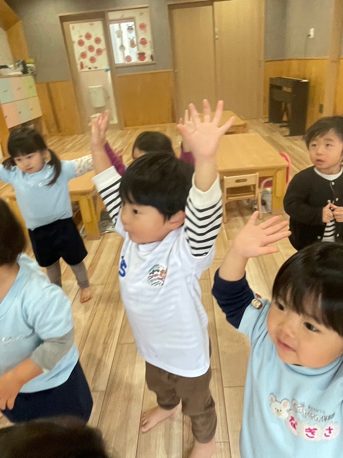 途中で不審者の避難訓練があり、静かに隠れたり、最後はDVDを見て不審者の時はどうしたらいいのかのクイズを見ながら学びました😎 最後は以上児さんに手伝ってもらいながら、片付けも頑張りましたよ💪うさぎ、こあら、きりん