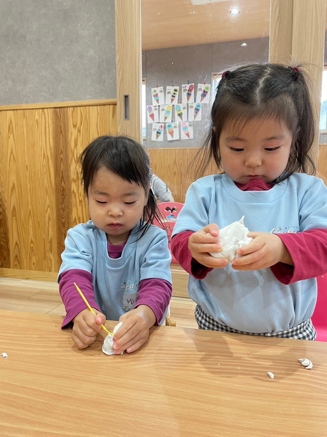 おままごとに新しいおもちゃがあり、早速夢中で遊んでいました☺️ キッチンセットも使いお皿を洗う真似をしたり、ガスコンロでご飯を作る真似をしながらみんなで楽しく遊んでいました☺️