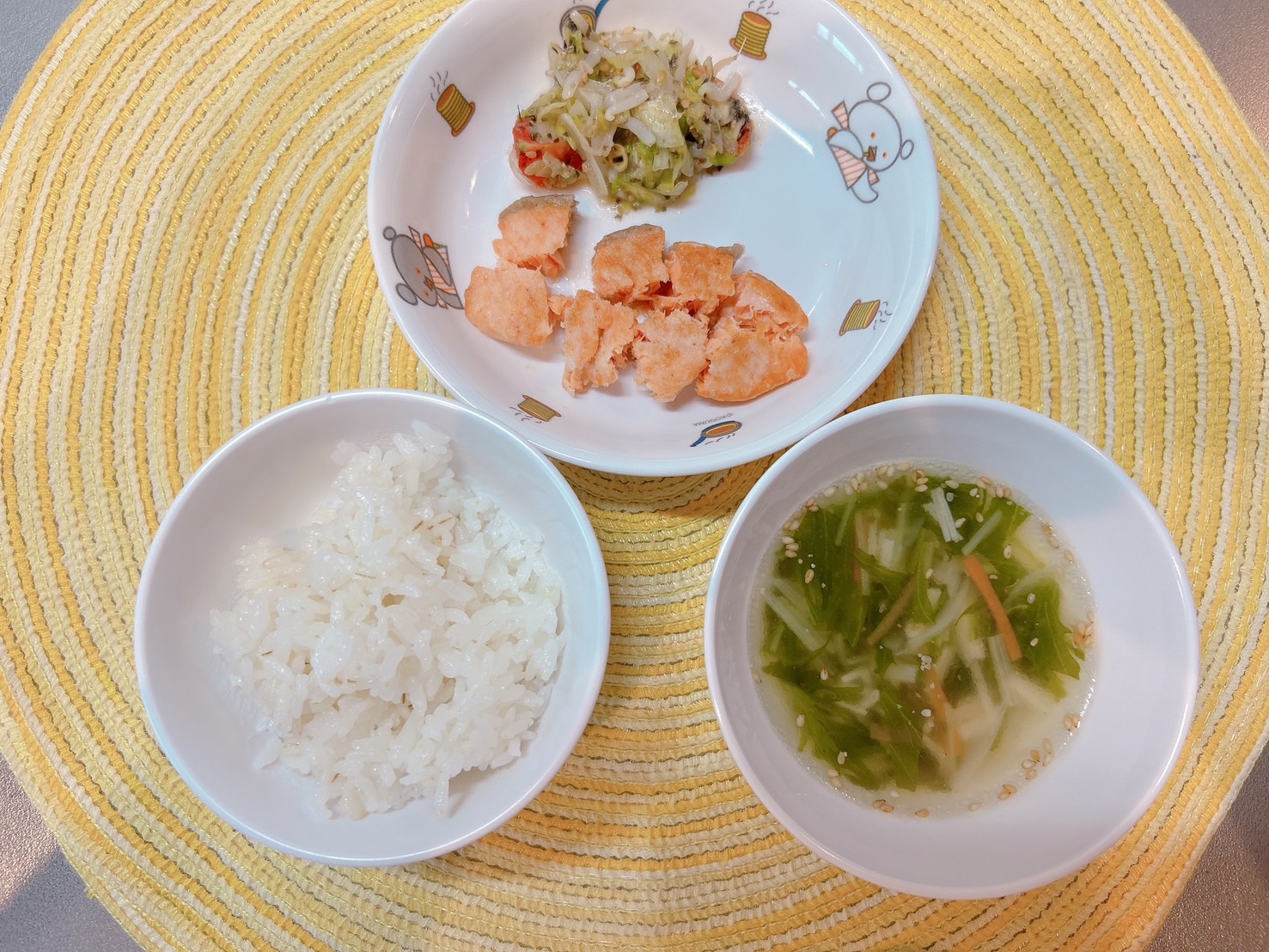 その後不審者の避難訓練をしました!怖いなーと言い不安そうな表情でしたが、落ち着いて先生の話を聞いて避難することが出来ていました🩷【くりえいと園の今日の給食です】