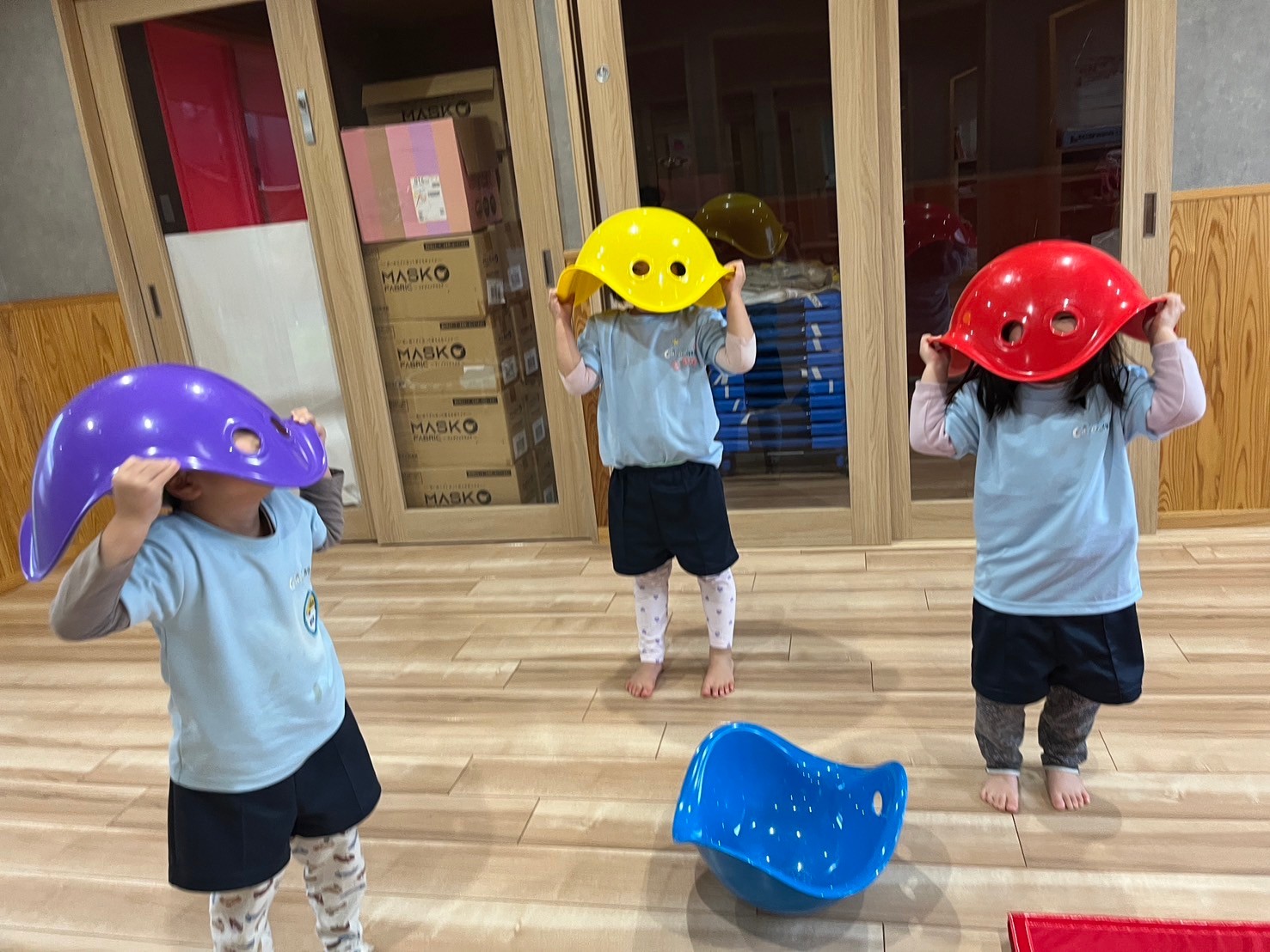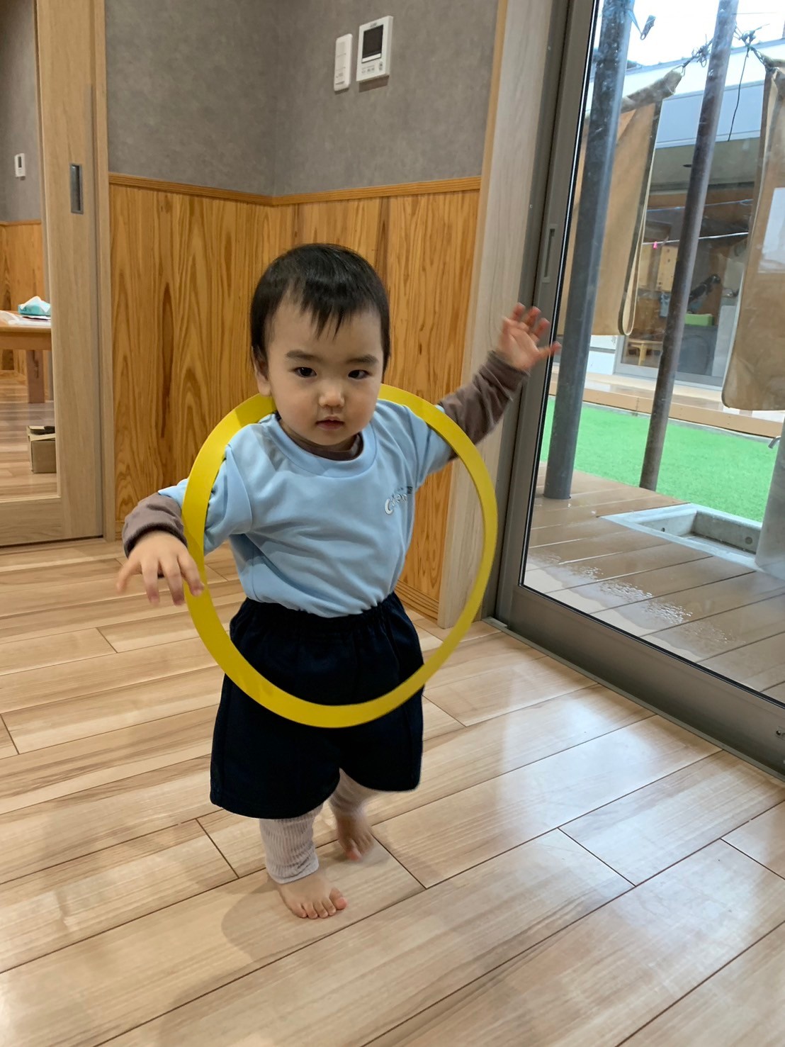 今日は室内でミニ滑り台やボブルス、フープやトンネルなど、盛りだくさんの遊具で遊びました❣️