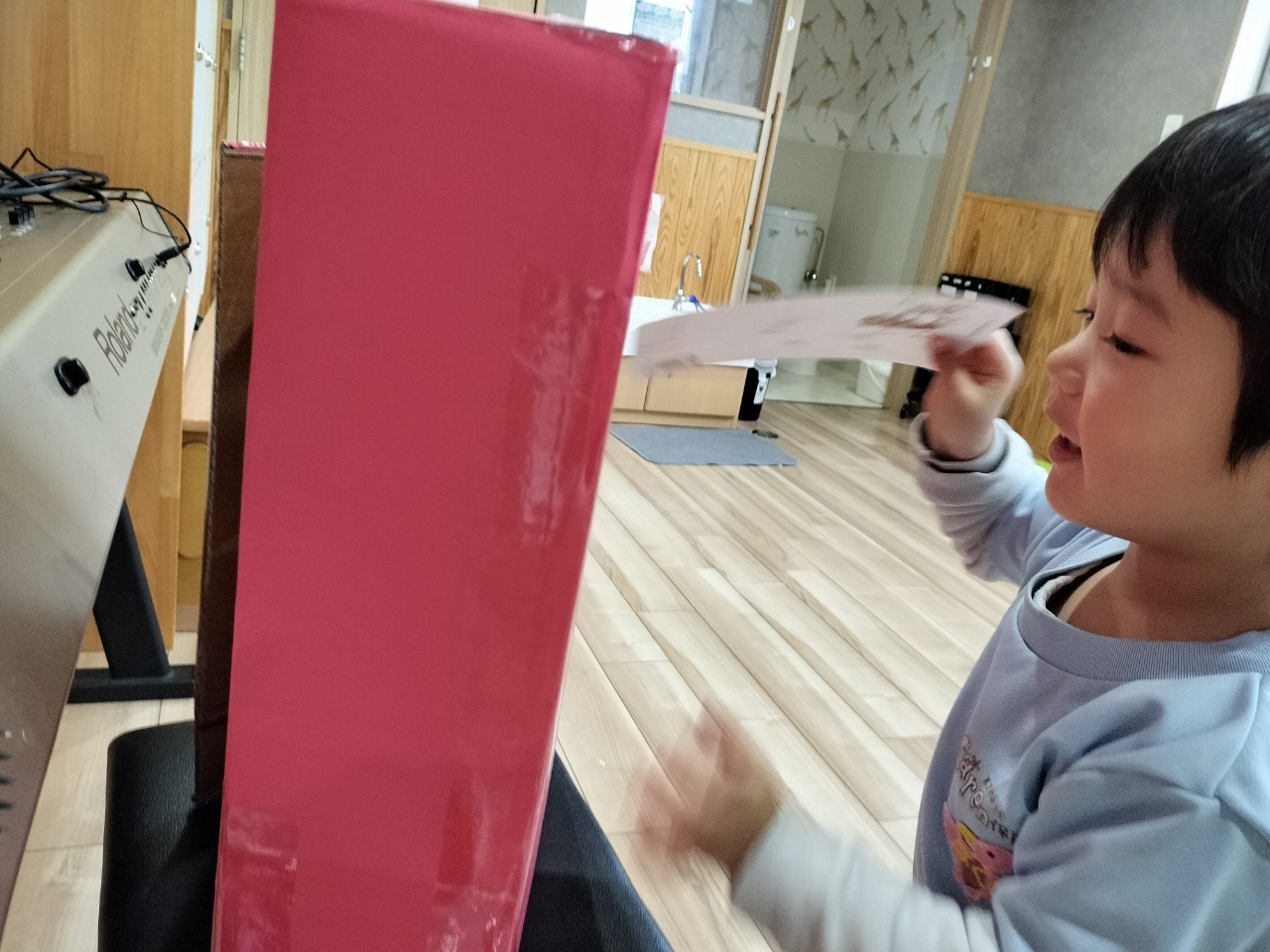 今日は英語教室の日でした。先生と今日のお天気☀☁☔を英語で話したり動物を英語で教えてもらいました。最後はご褒美シールをもらい④番にシールを貼ることができましたよ✌