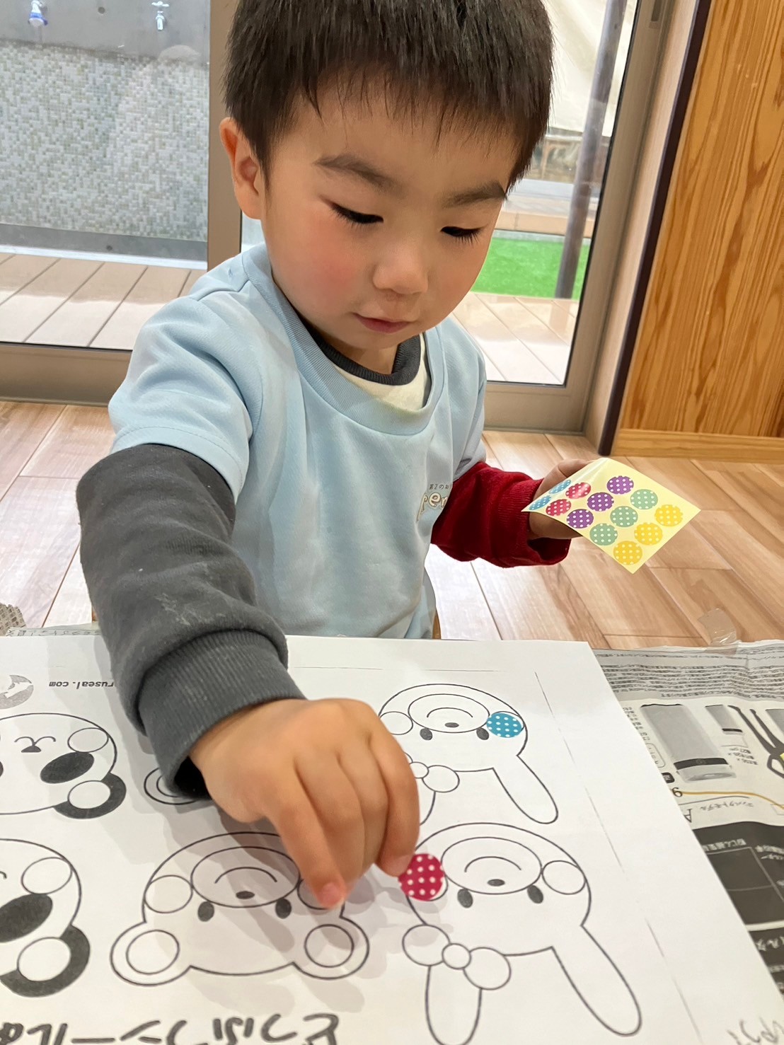 各机ごとに分かれて月製作や、ぬりえ、シール貼りと違ったことをしていったので飽きずに集中して最後まですることができていましたよ☺️