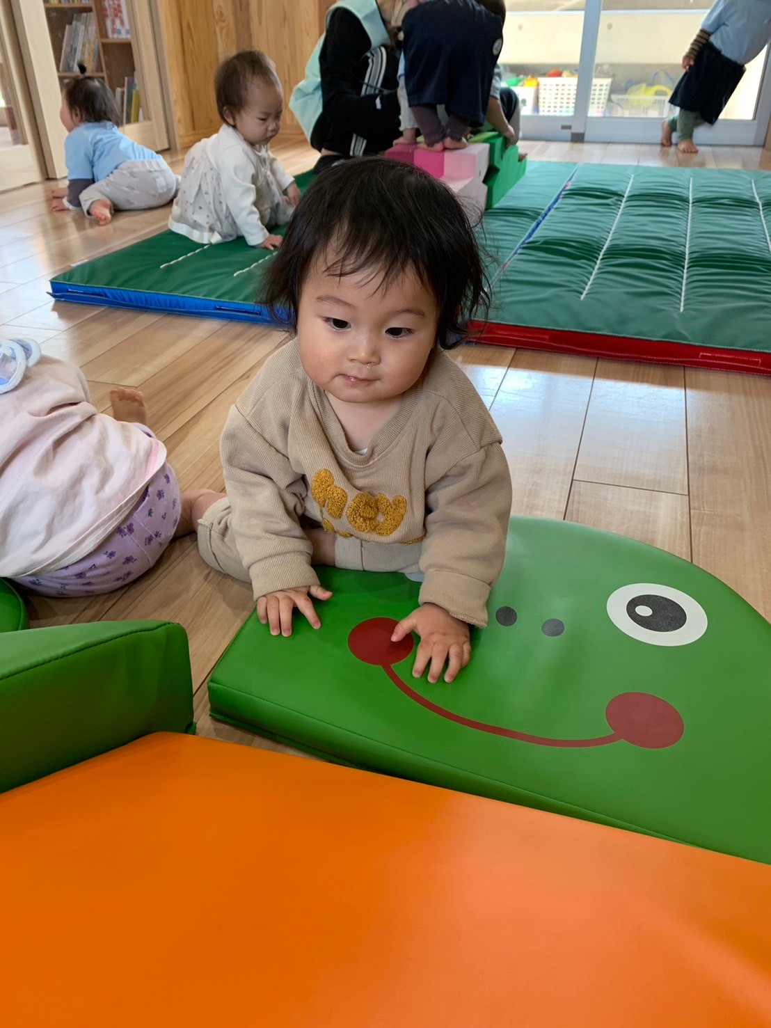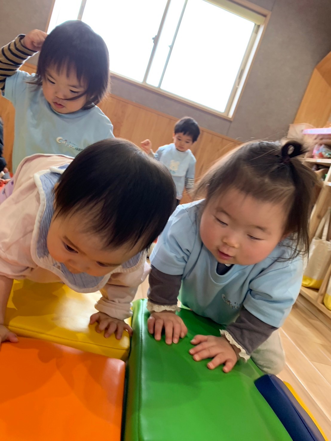プレイマットで登ったり滑ったり、元気いっぱい身体を動かして楽しみました😆