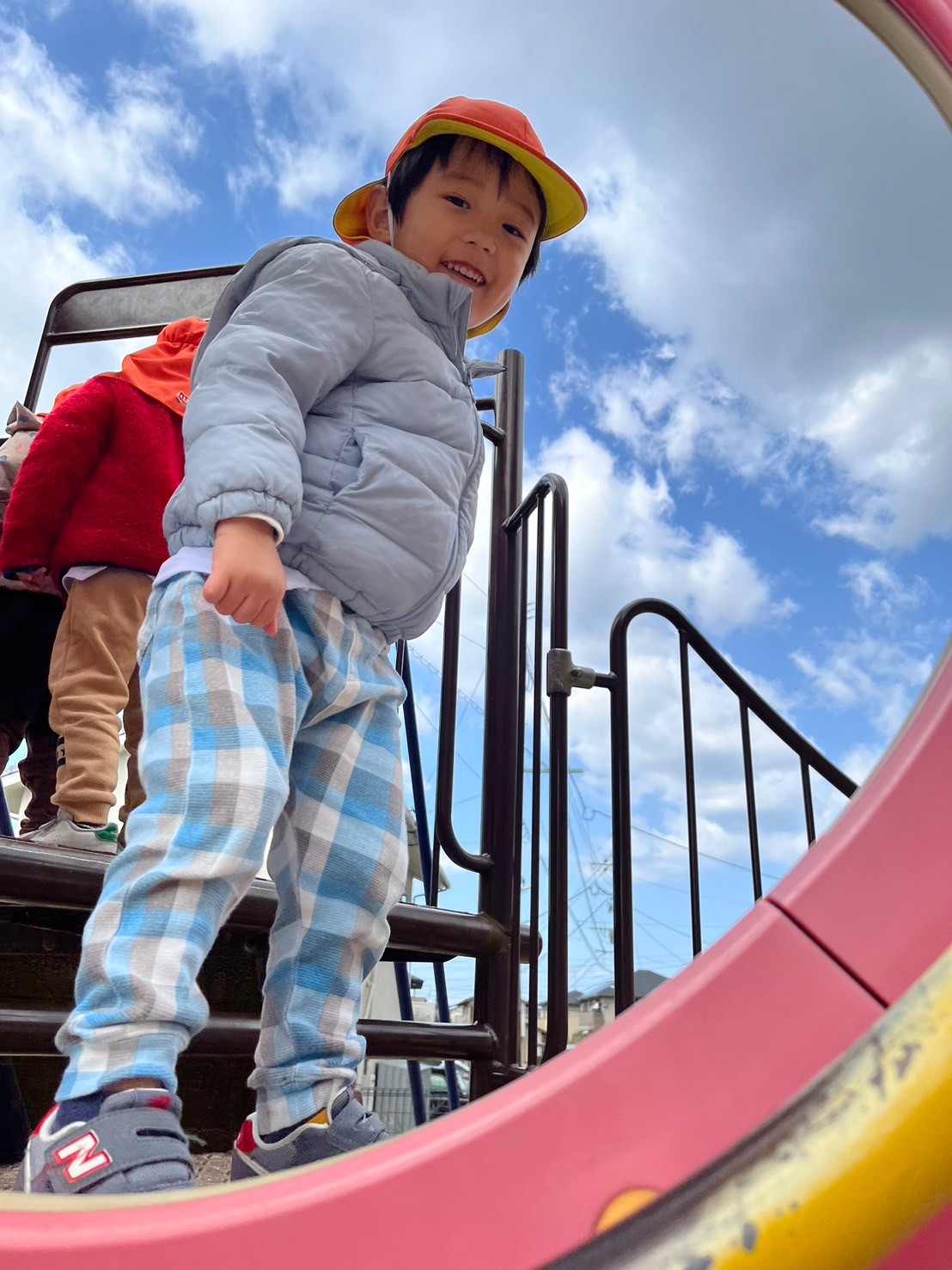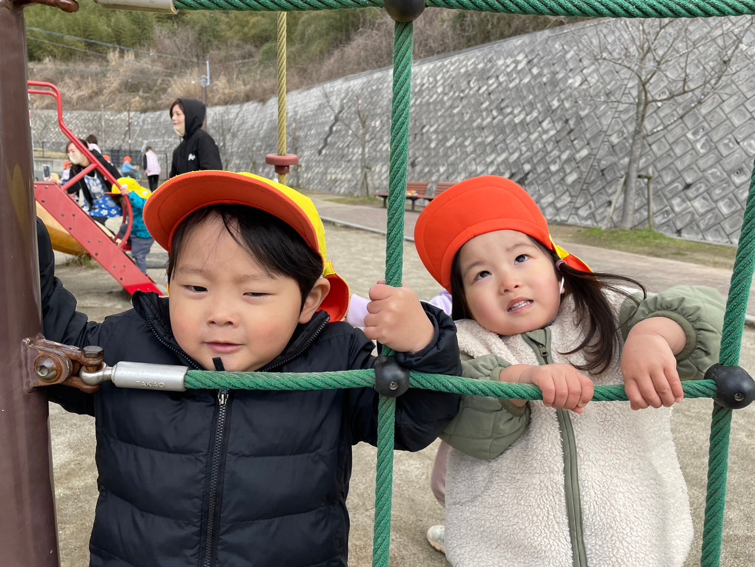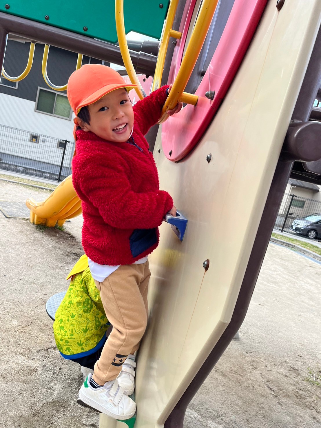 公園に着いて保育者からお約束を聞いて、順番を守って遊ぶことができました🤭ぱんださんに憧れて難しい遊具も積極的に挑戦するりす組さんがいたり、りす組が行けないところを見つけたら「ダメだよー!」とぱんだ組のお兄さんたちが教えてくれてました🥰園児同士遊ぶ姿も見られてケガもなく過ごせました🩵うさぎ、こあら、きりん組