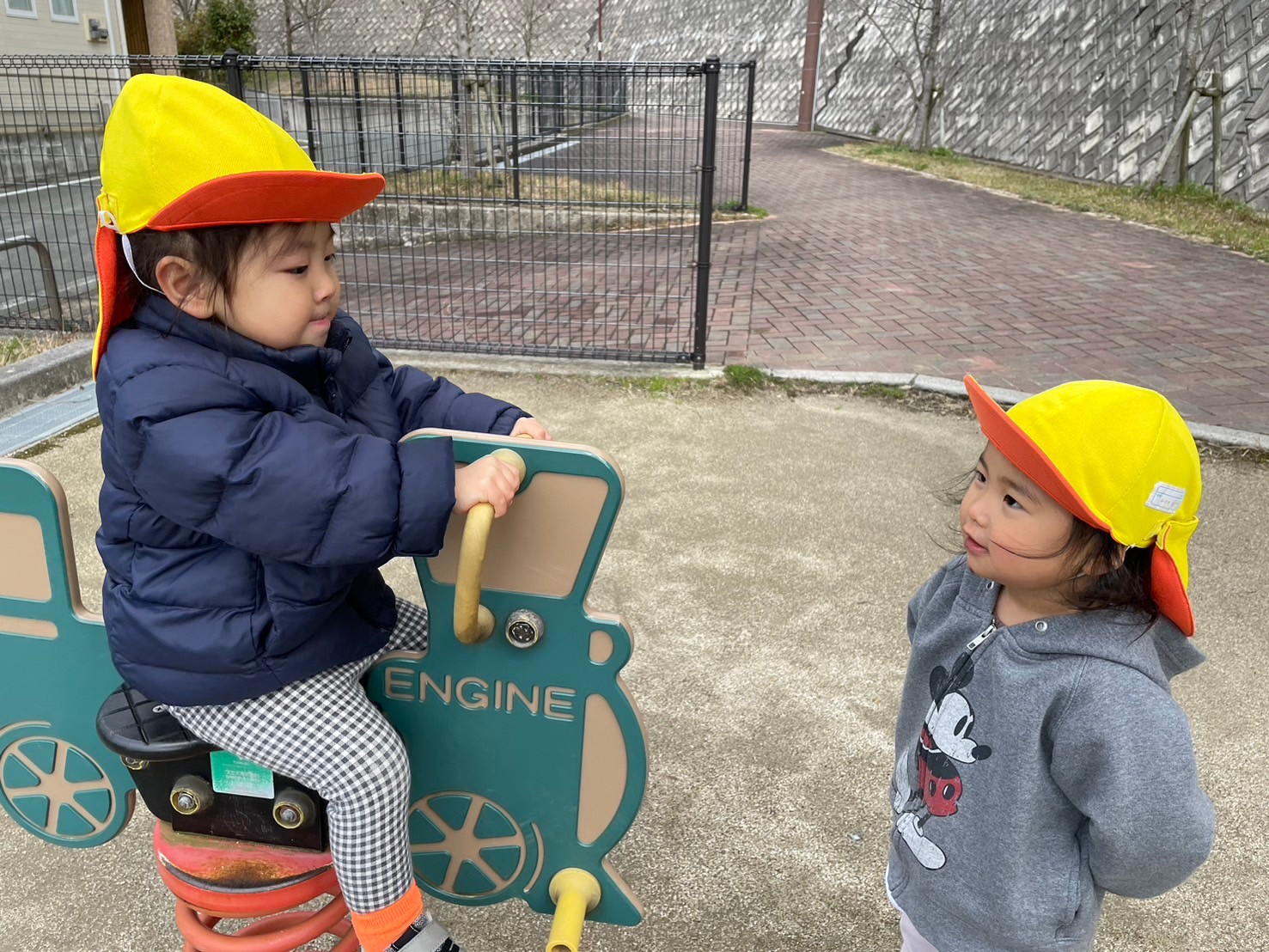 元気いっぱいのひよこさん達、楽しそうな遊具に嬉しそうでしたが「壁さんぺったん」をして、遊ぶ前のお約束がきちんと聞けるようになりました💕