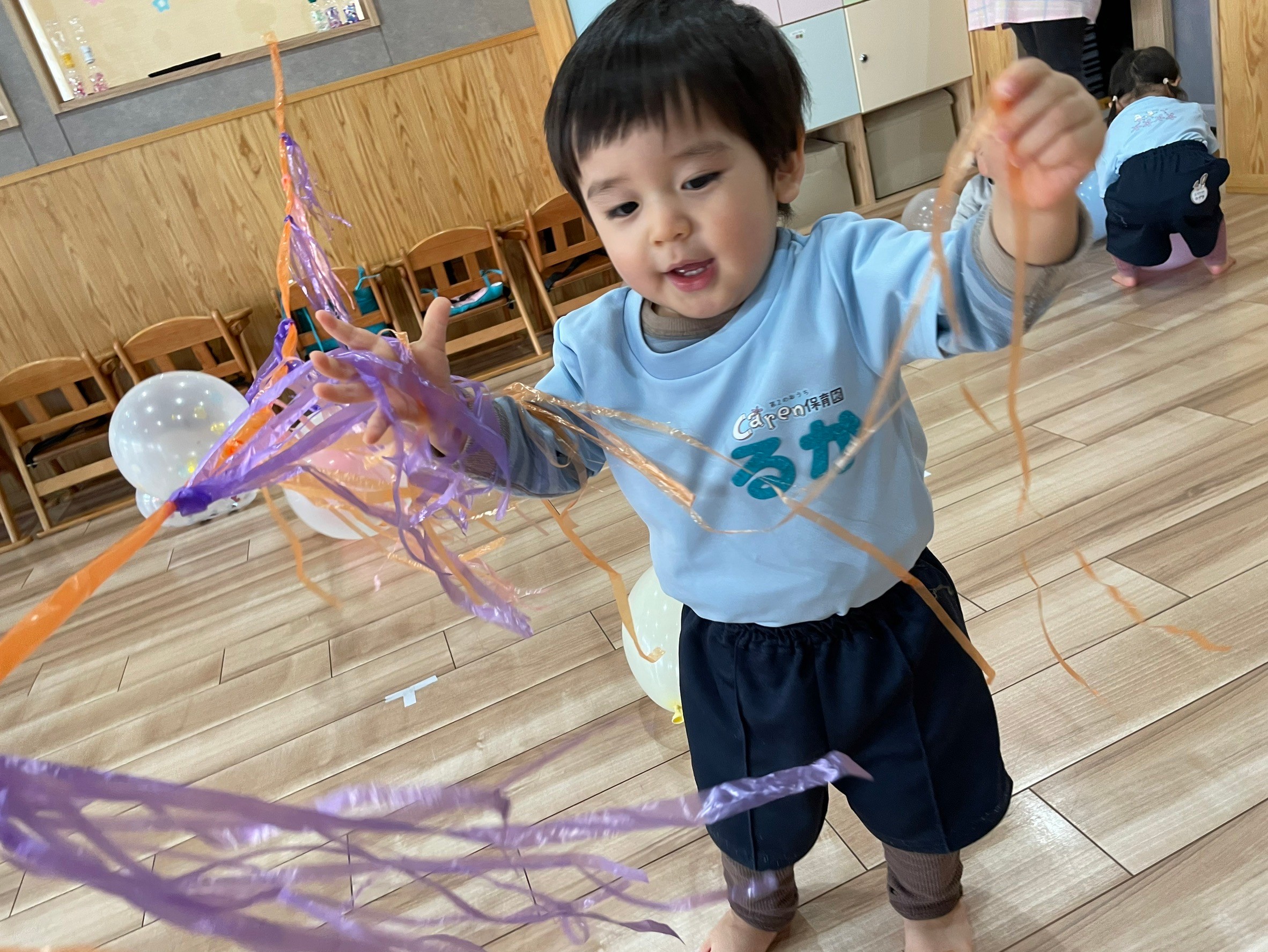 高く上がった風船を見上げたり、すずらんテープのカーテンの中を行き来したりと、笑顔溢れる時間を過ごしました✨