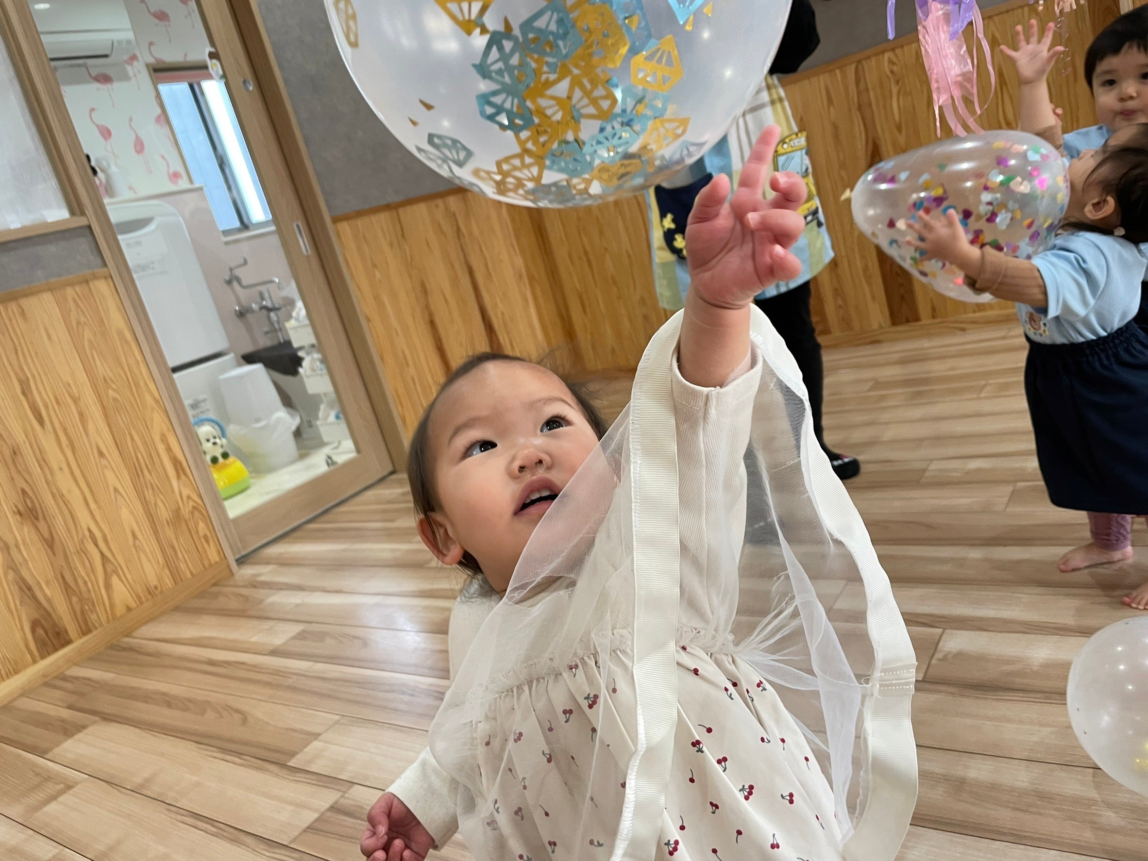 今まで保育園では見かけなかった風船に大興奮のひよこ組のお友達💕