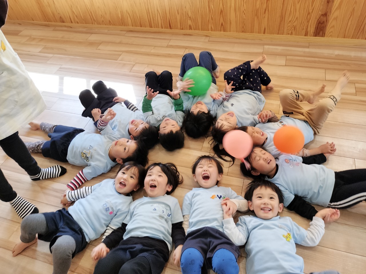 今日は3月の誕生会がありました(ケーキ) みんなでハッピーバースデーの歌を歌ってお祝いしたり先生からの出し物の大型絵本や⭕️❌クイズも楽しむことができましたよ🥳