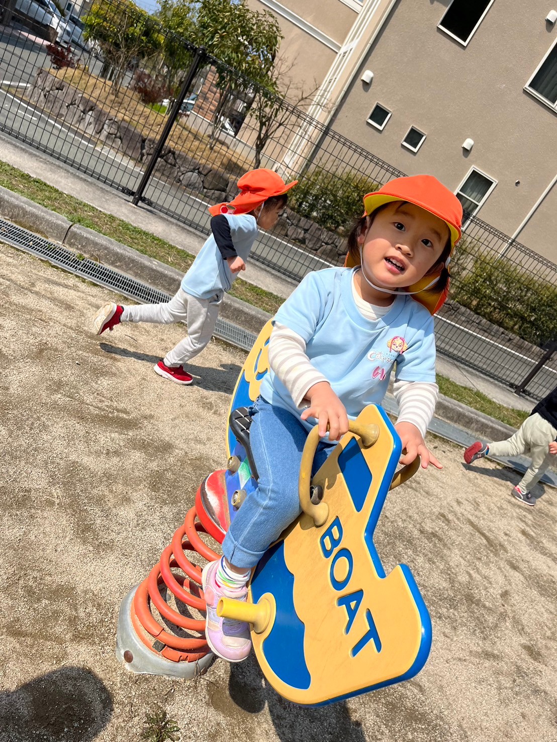 周りの景色の小さな気づきを喜んだり、近所の方に「ばいば〜い」とご挨拶したり頑張って歩きました😄公園では滑り台やボルタリング、スウィング遊具など積極的に挑戦して元気いっぱい遊びました✨✌️動きも益々活発になって成長ぶりがめざましいですよ✨お日さまもぽかぽかだったのでお茶タイムもしっかり摂りました😄💕ぱんだ組🐼