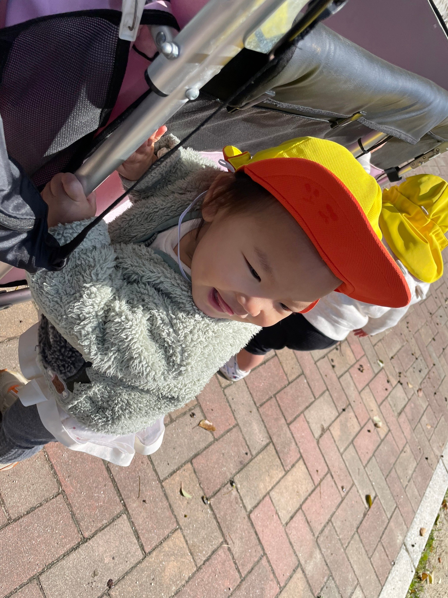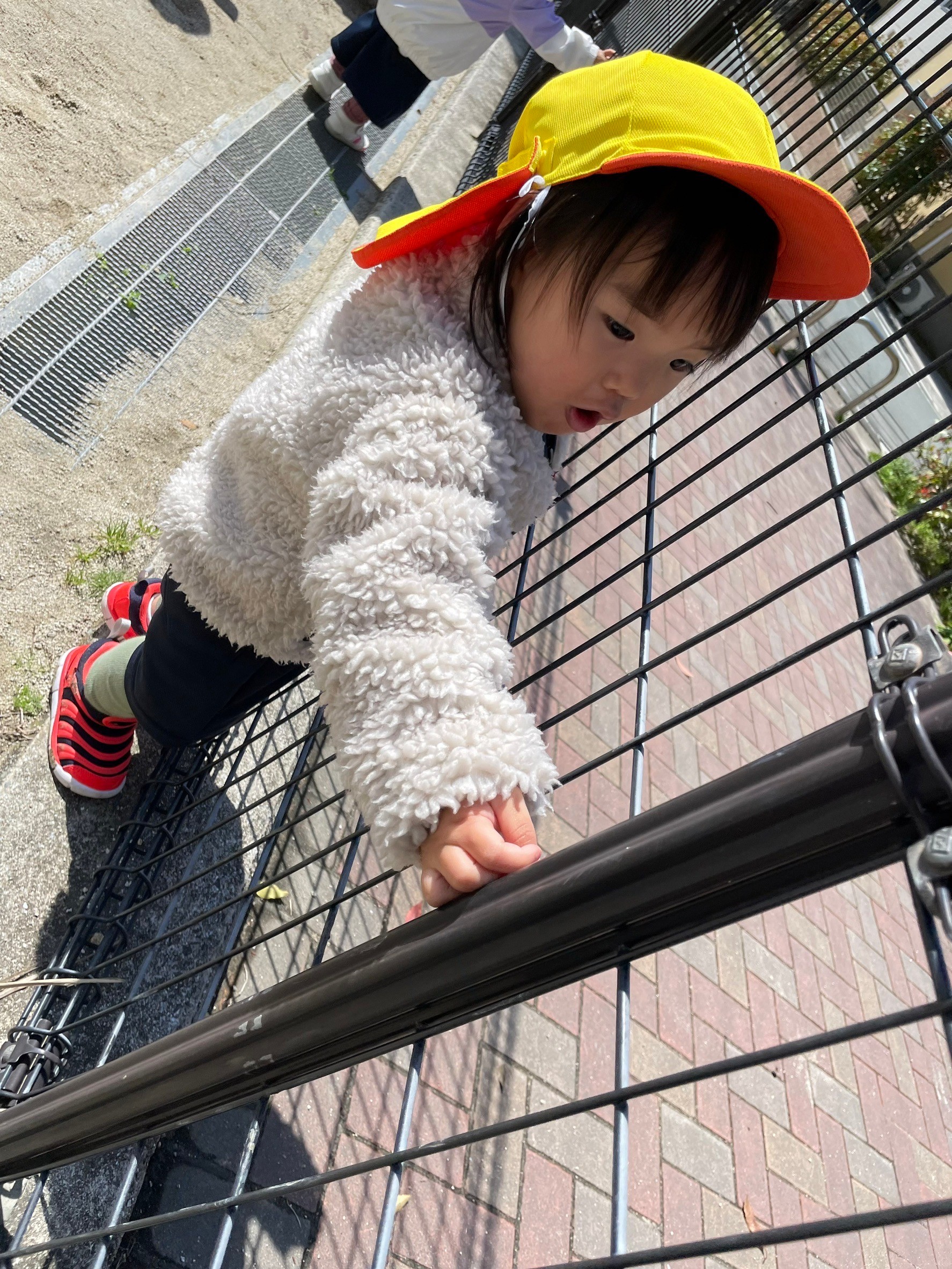 公園では、フェンス越しに保育者の姿を見つけ、不思議そうな顔からすぐにニコニコ笑顔になり、手を振ってくれましたよ🥰