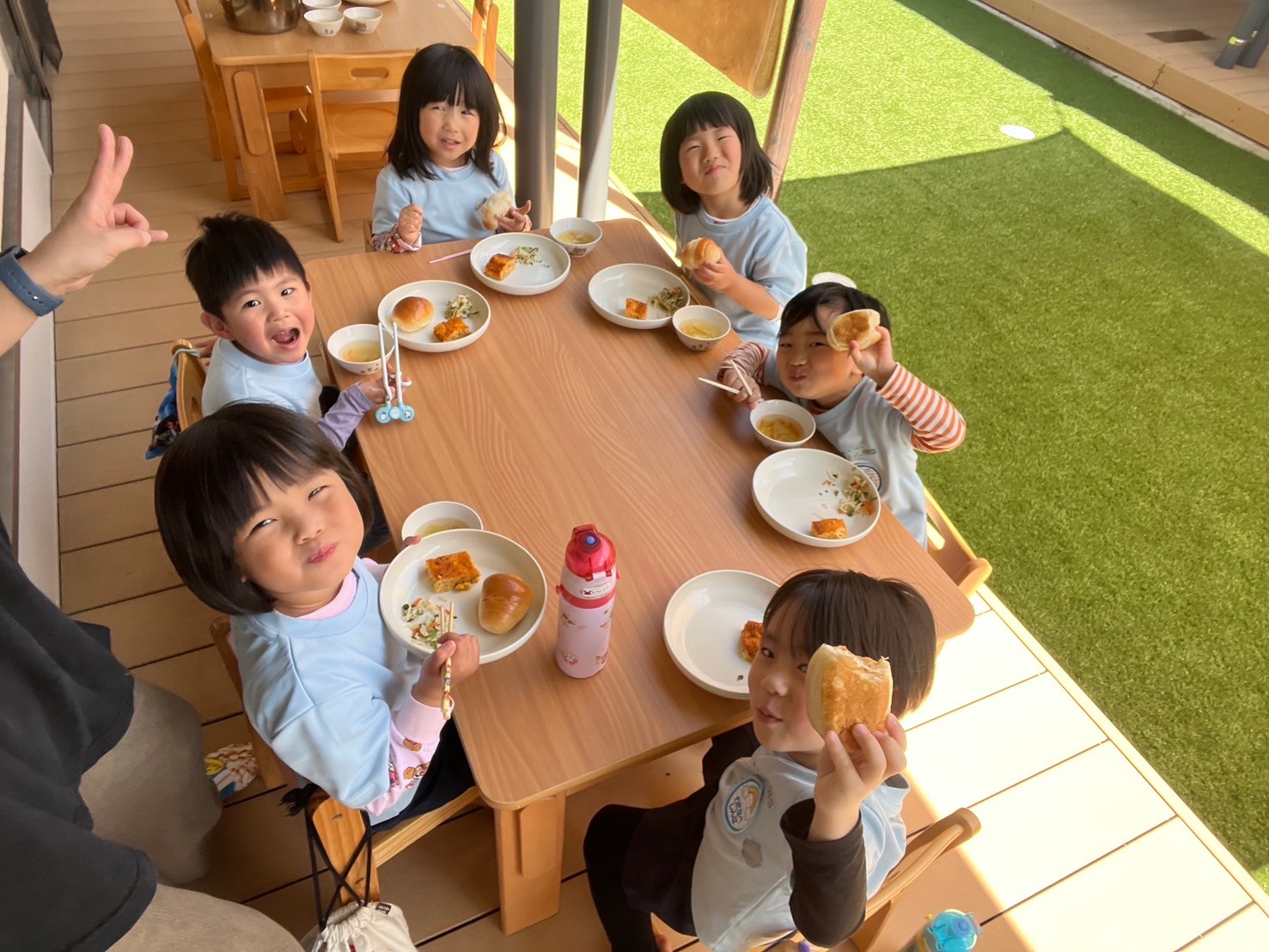 今日は天気も良く、皆でテラスで給食を食べました🤭