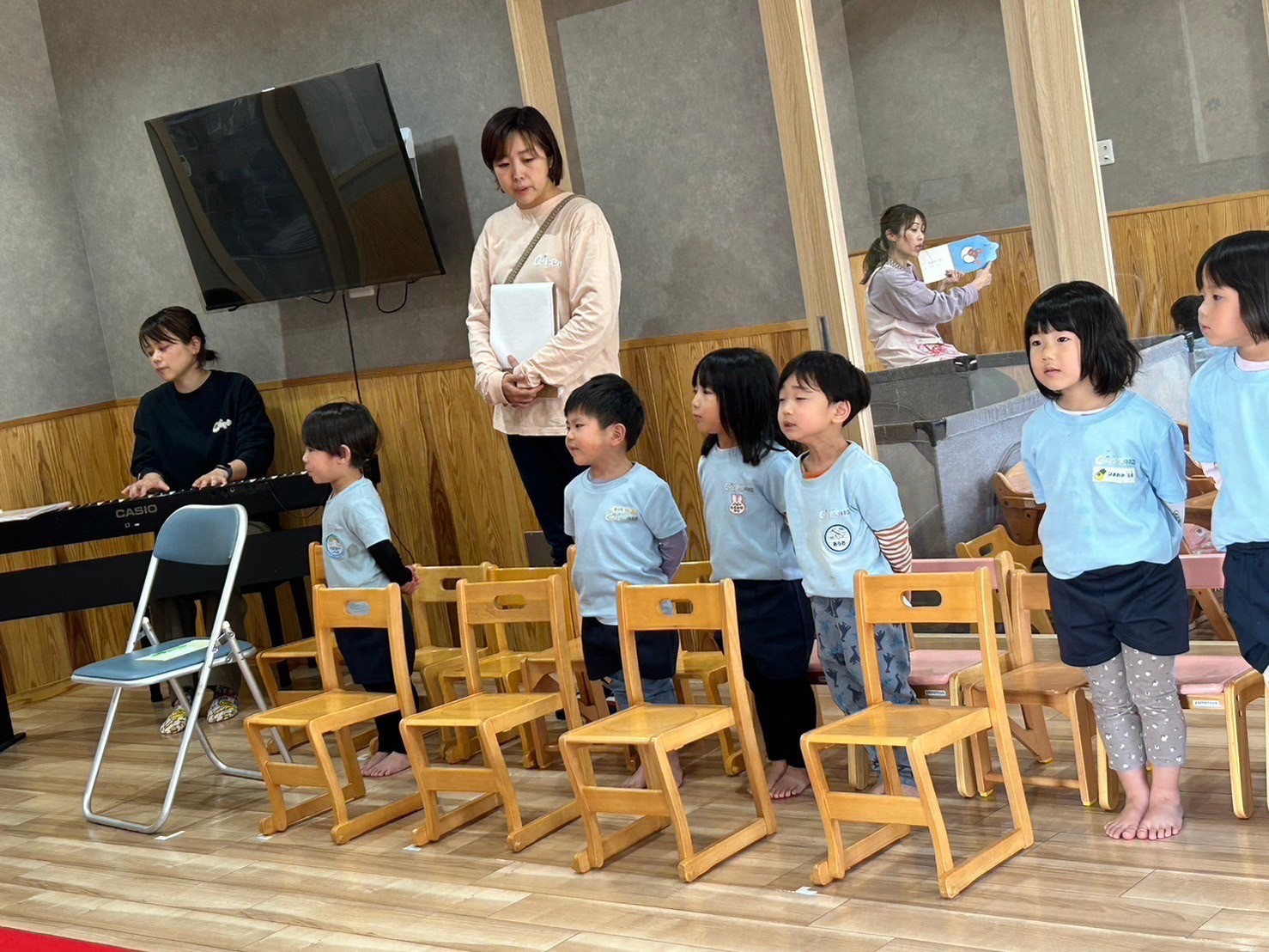 今日で最終登園のお友達もおり、本番のような雰囲気で思い出を振り返りながら感極まりつつの練習となりました🩷