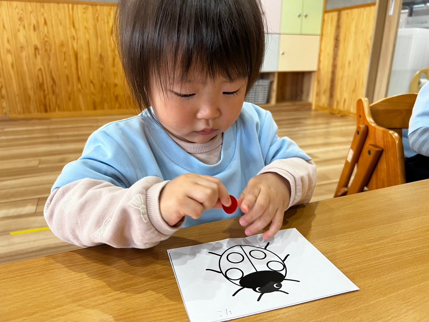 皆でお部屋に集まり「はらぺこあおむし」のペープサートを見ましたよ🫶最後は皆で「エイエイオー✊」と声を合わせましたよ🥰