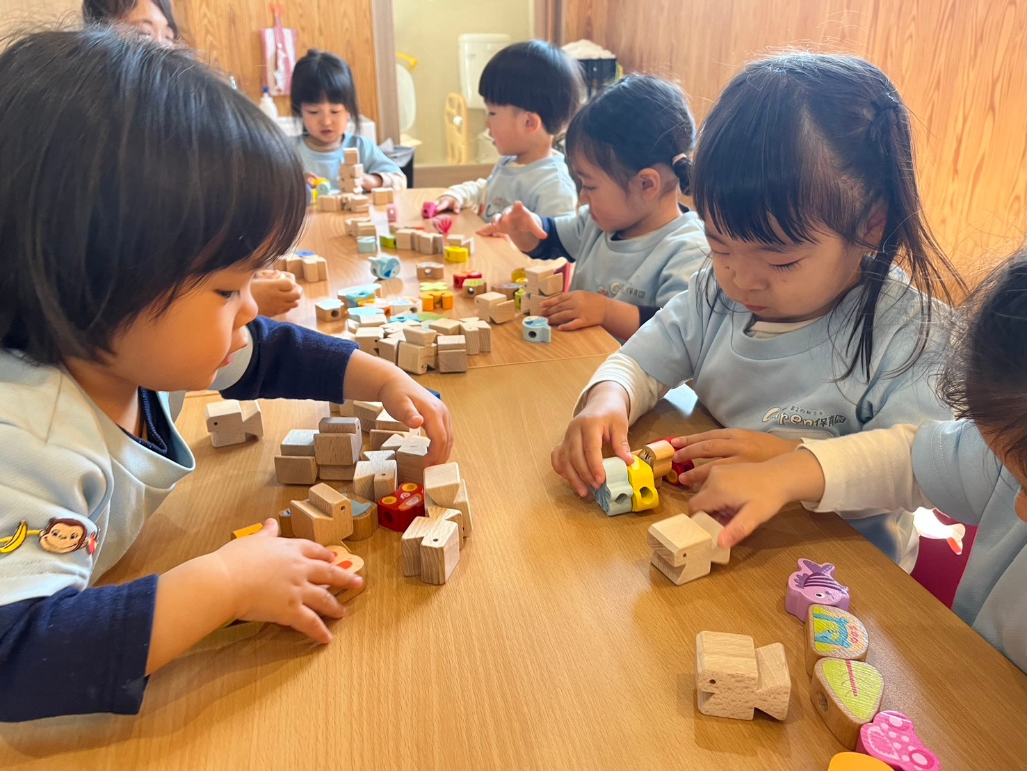 お部屋に戻ってからは積み木を積み上げたり並べて遊びました😍
