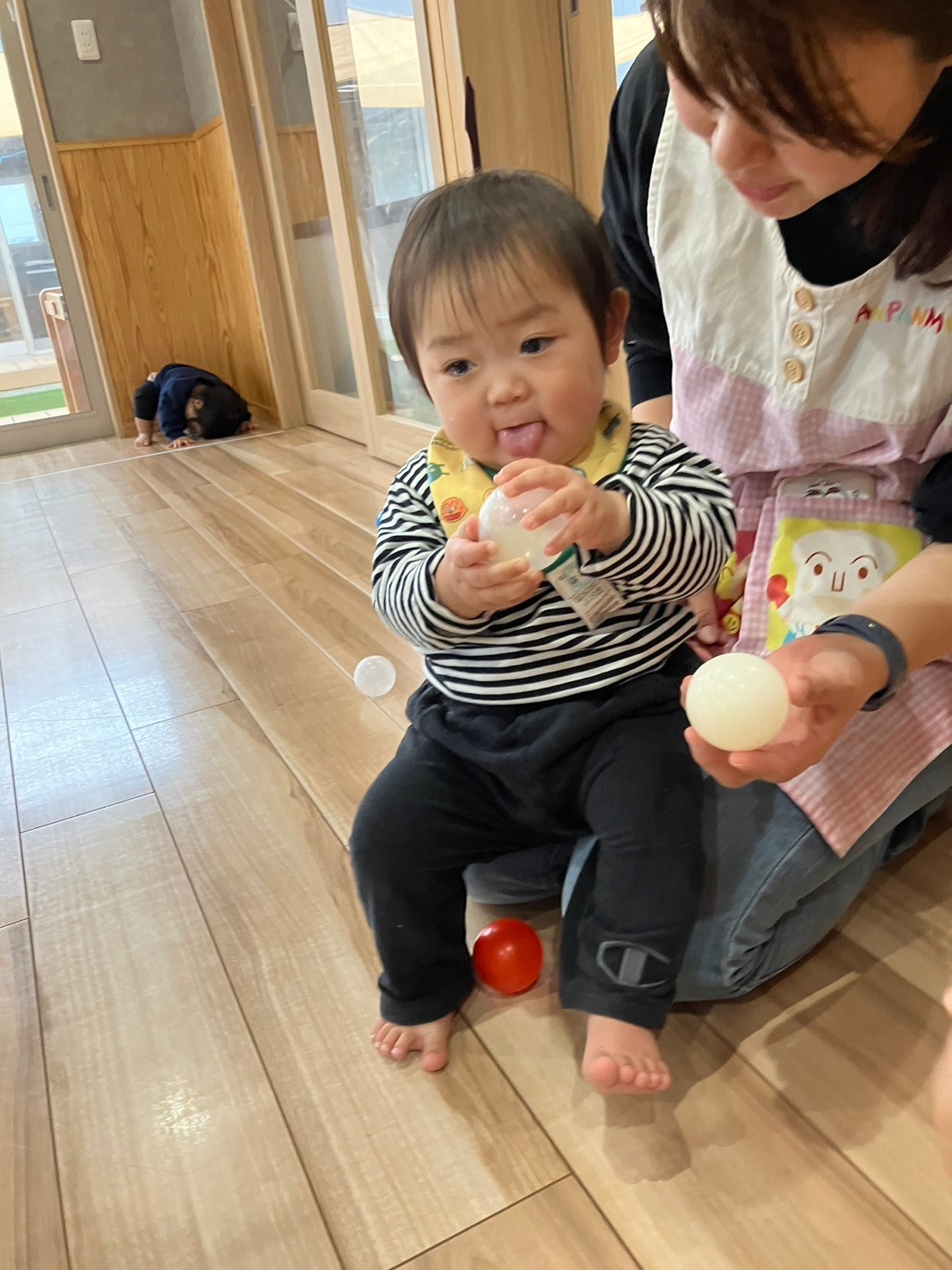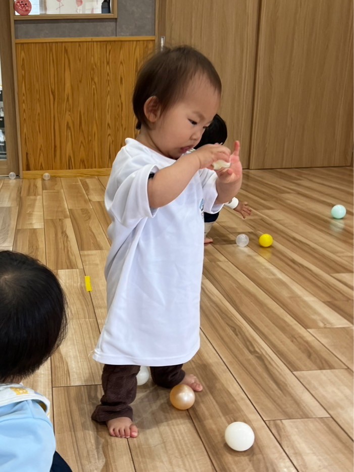 その後、ボール遊びをしてボールを追いかけたり触ったりして夢中になって遊んでいましたよ♡