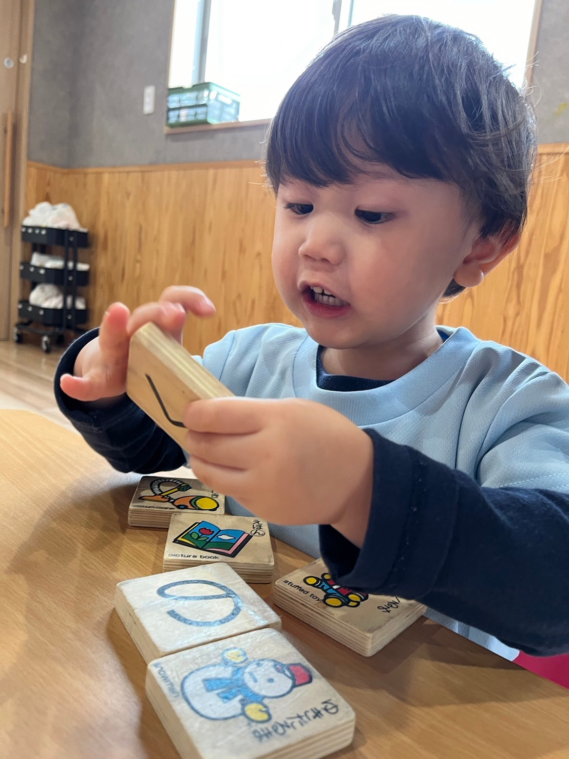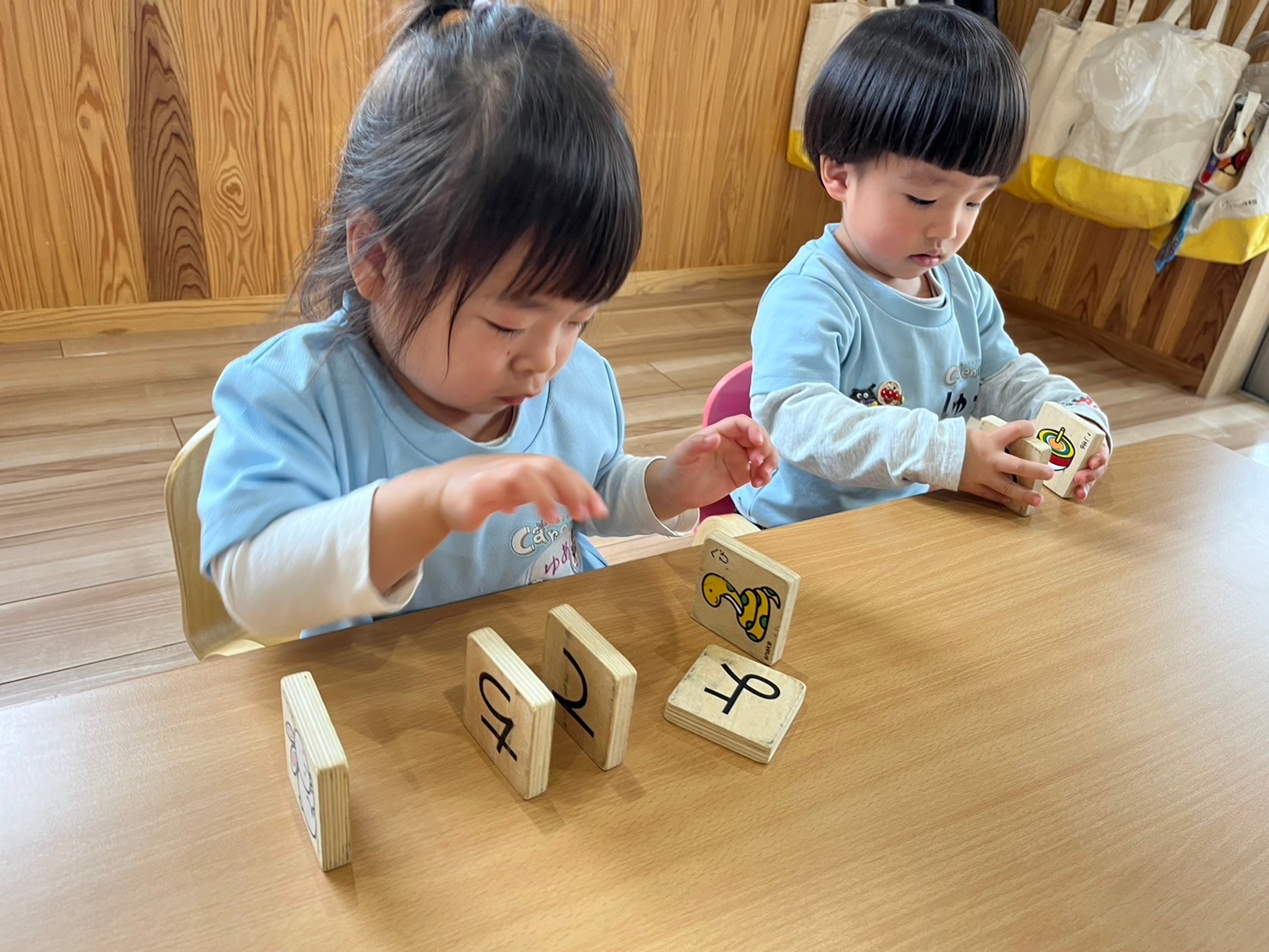 その後ひらがなの書いてある積み木で遊びました💗「自分の名前を見つけたい!」とひらがなを探す子や、並べてみたり積み上げるのを楽しむ子どもたちでした🥹❤️
