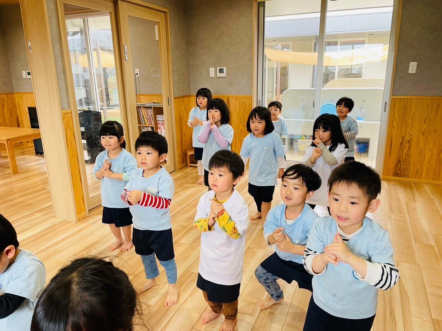 子どもたちが好きな音楽をかけて体を動かして楽しみましたよ😊🎵