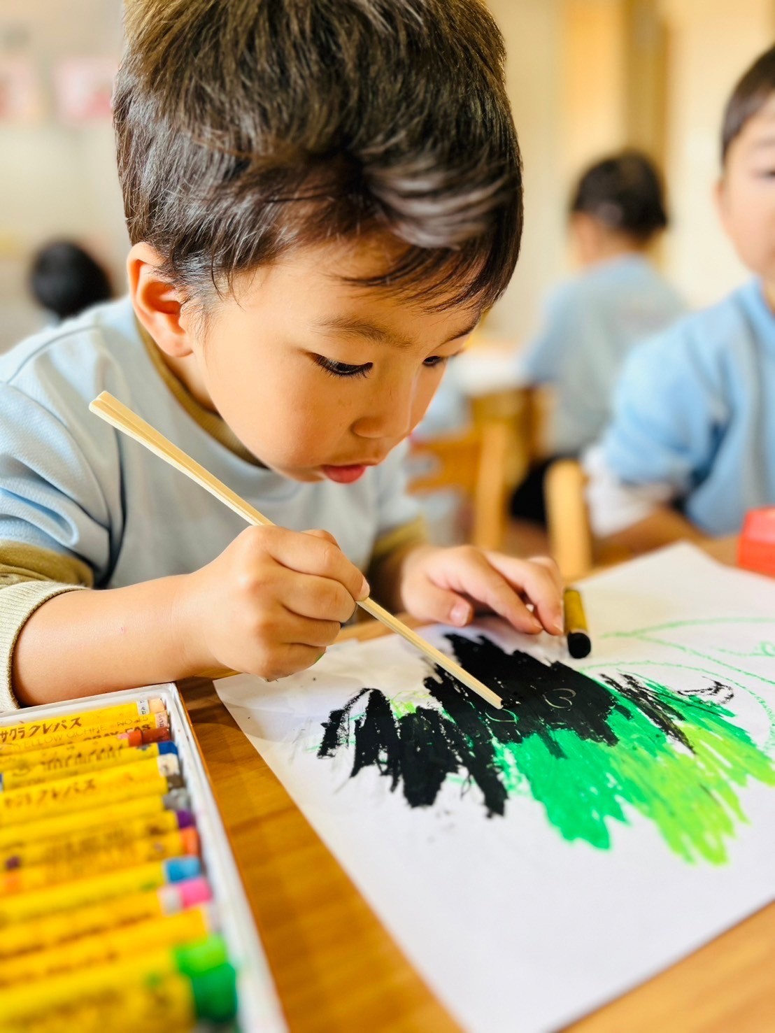 その後はスクラッチの技法を使ってお絵描きをしました🖍️