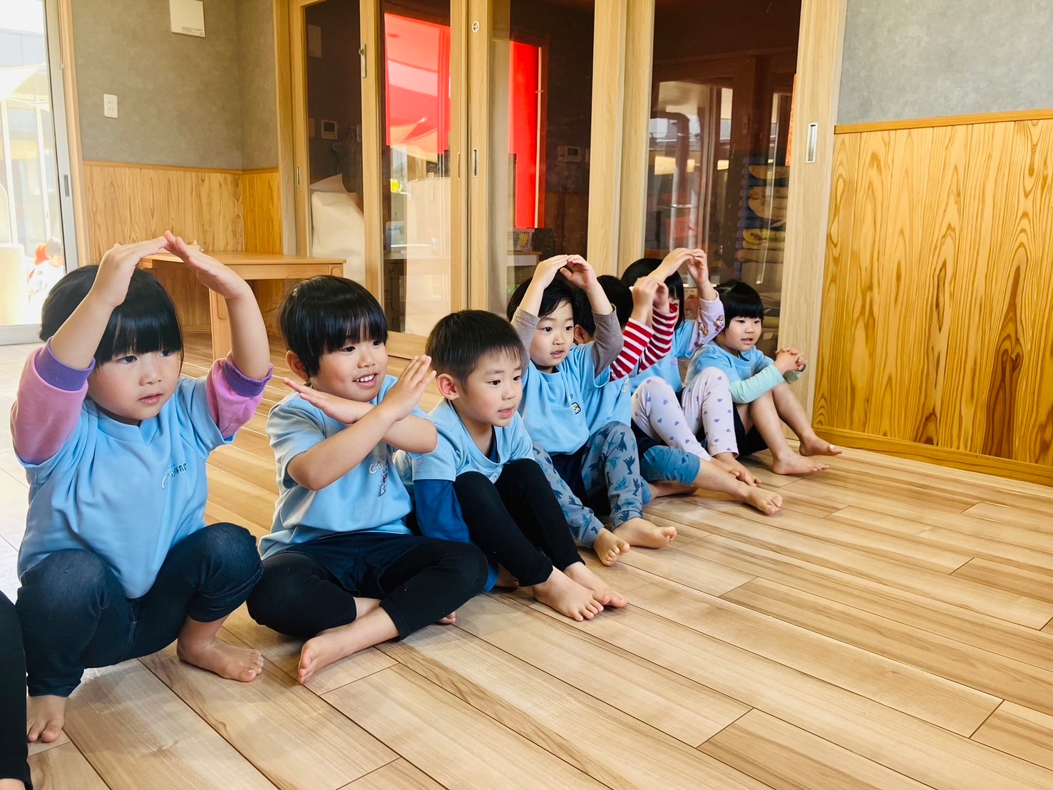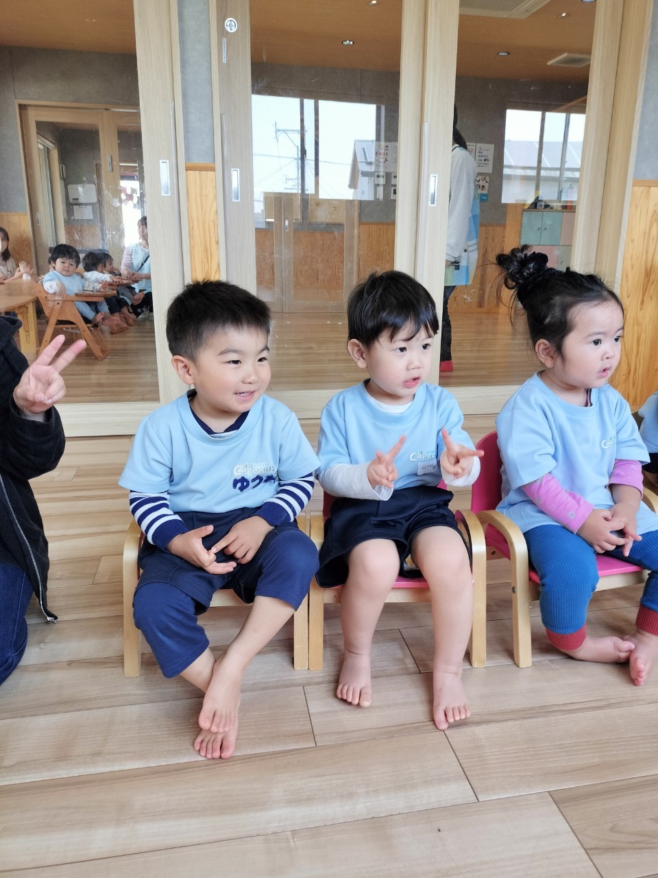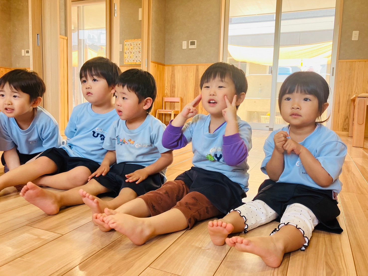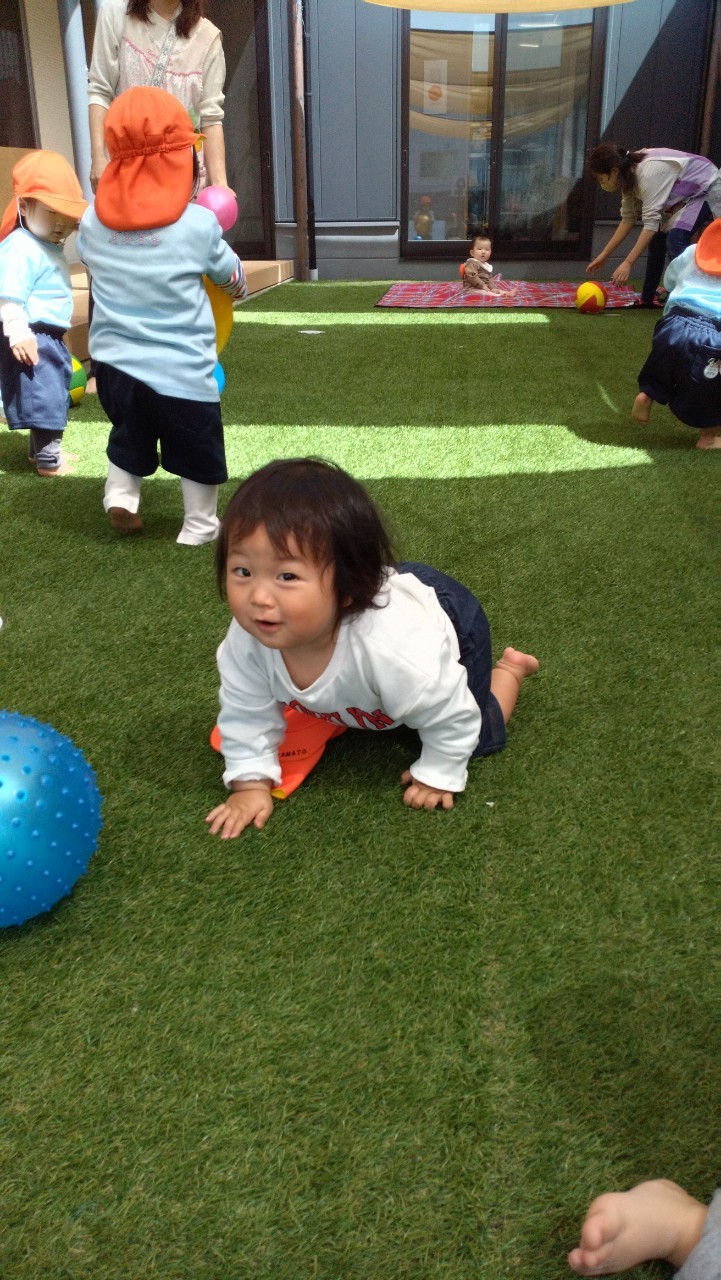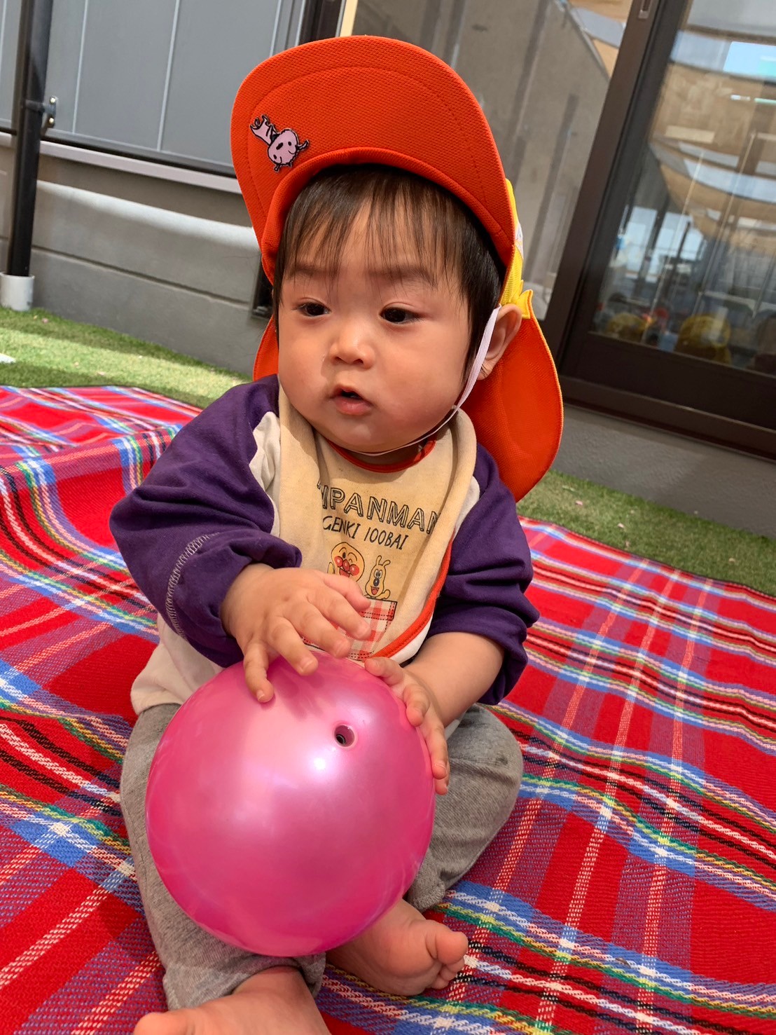 シートの上にお座りをしてしゃぼん玉が飛んでいくのを目で追ったり、優しいりす組やぱんだ組のお友だちがボールを持ってきて触れ合う事ができて嬉しそうでした😊りす組🐿