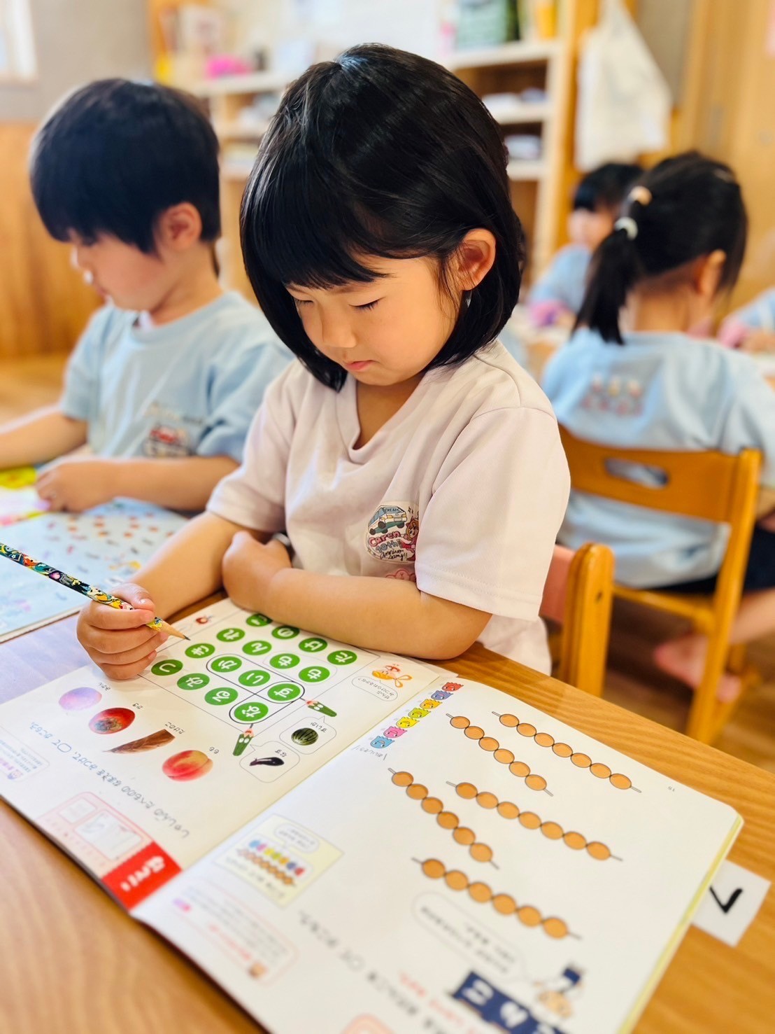 うさぎ組の子がワニを見て「alligator!」と発言したのには驚きました🤭🌸ポピーでは、うさぎ組は平仮名の読み方を学び、こあら、きりん組は「たけのこ」や「もも」等の隠れた文字を見つけだし丸で囲む作業に集中して取り組んでいましたよ✨