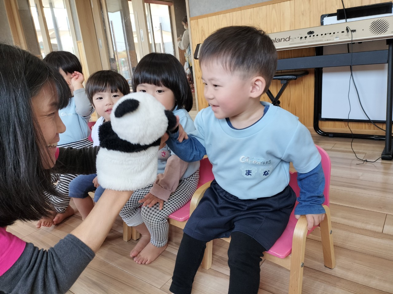 英語教室、発育測定後はひよこ組りす組と一緒に園庭で遊んで、ボールを投げたりシャボン玉を見て大喜びなぱんだ🐼ぐみのお友達でした💗うさぎ、こあら、きりん組