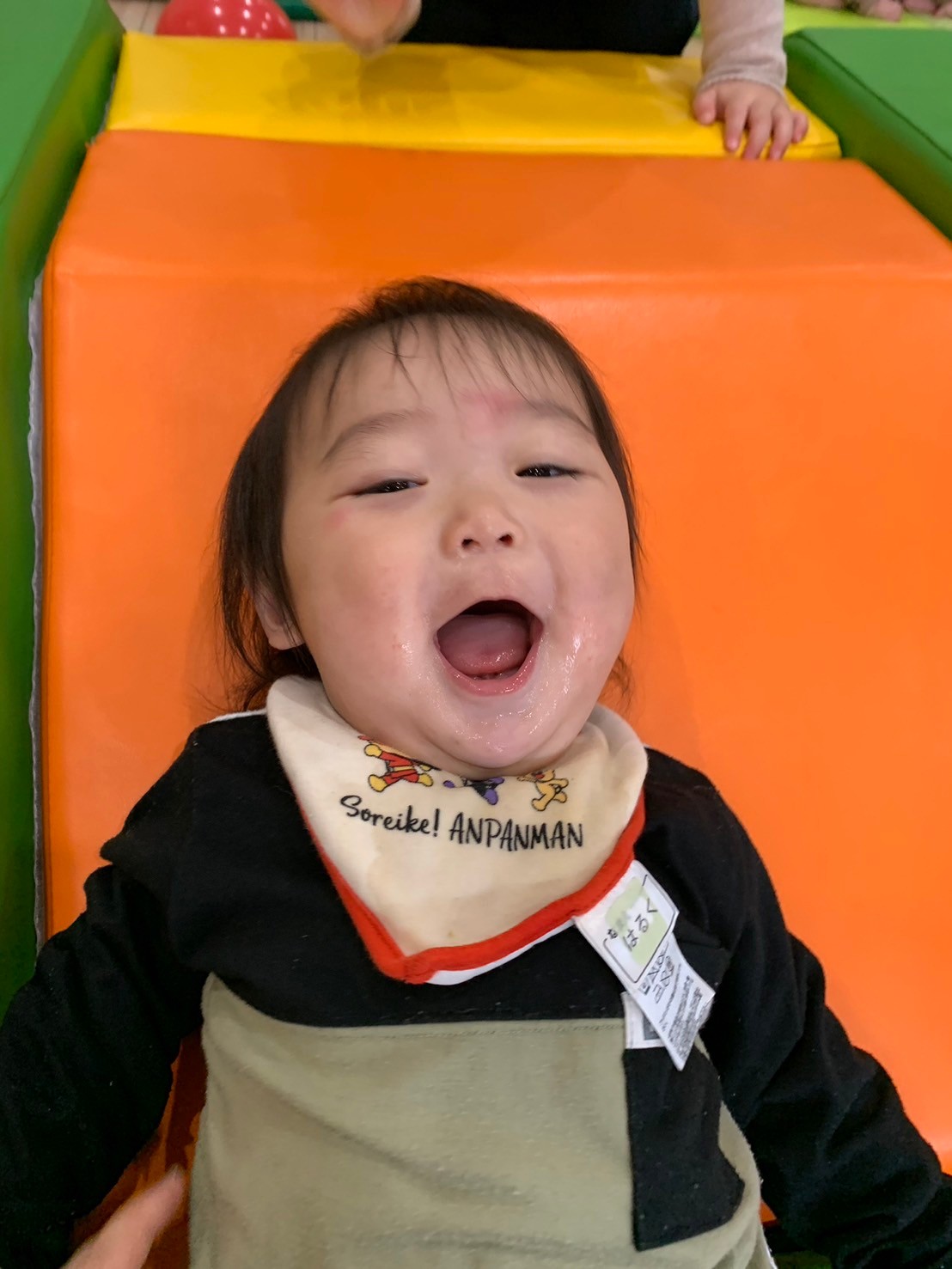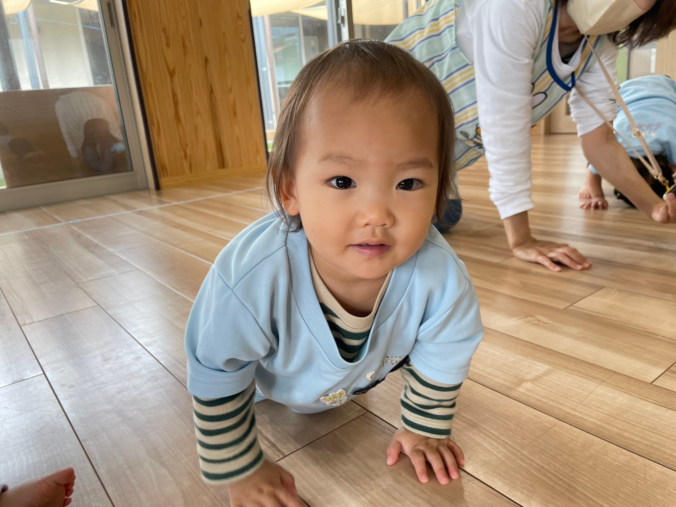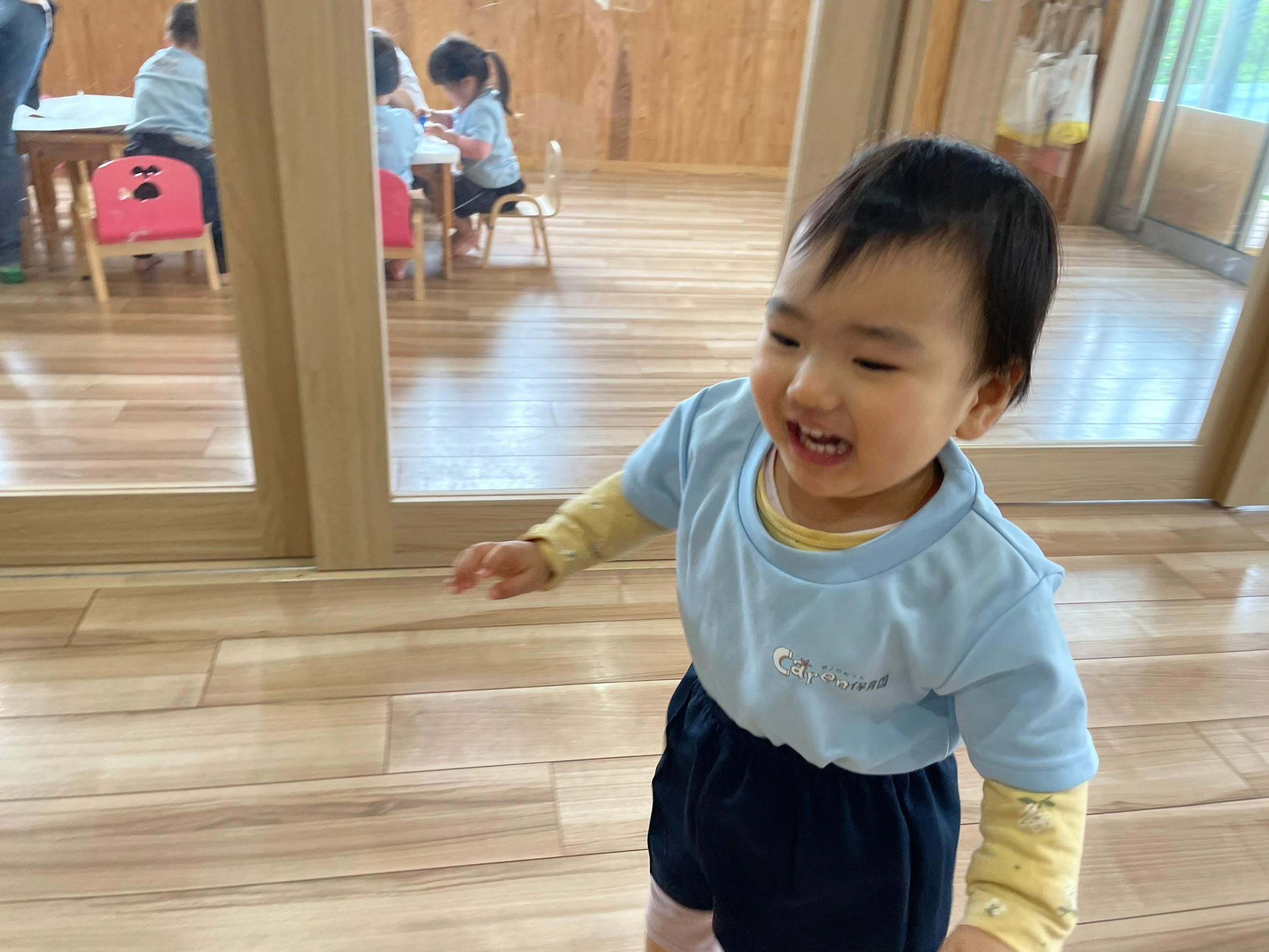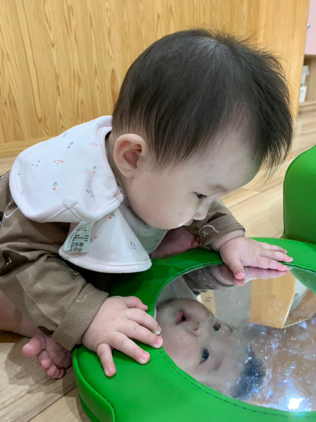 階段から上手に上り滑り下りていましたよ!お座りが上手なお友だちはマットの鏡に映る自分の顔をじ〜っと不思議そうに眺めている姿が可愛かったです😍