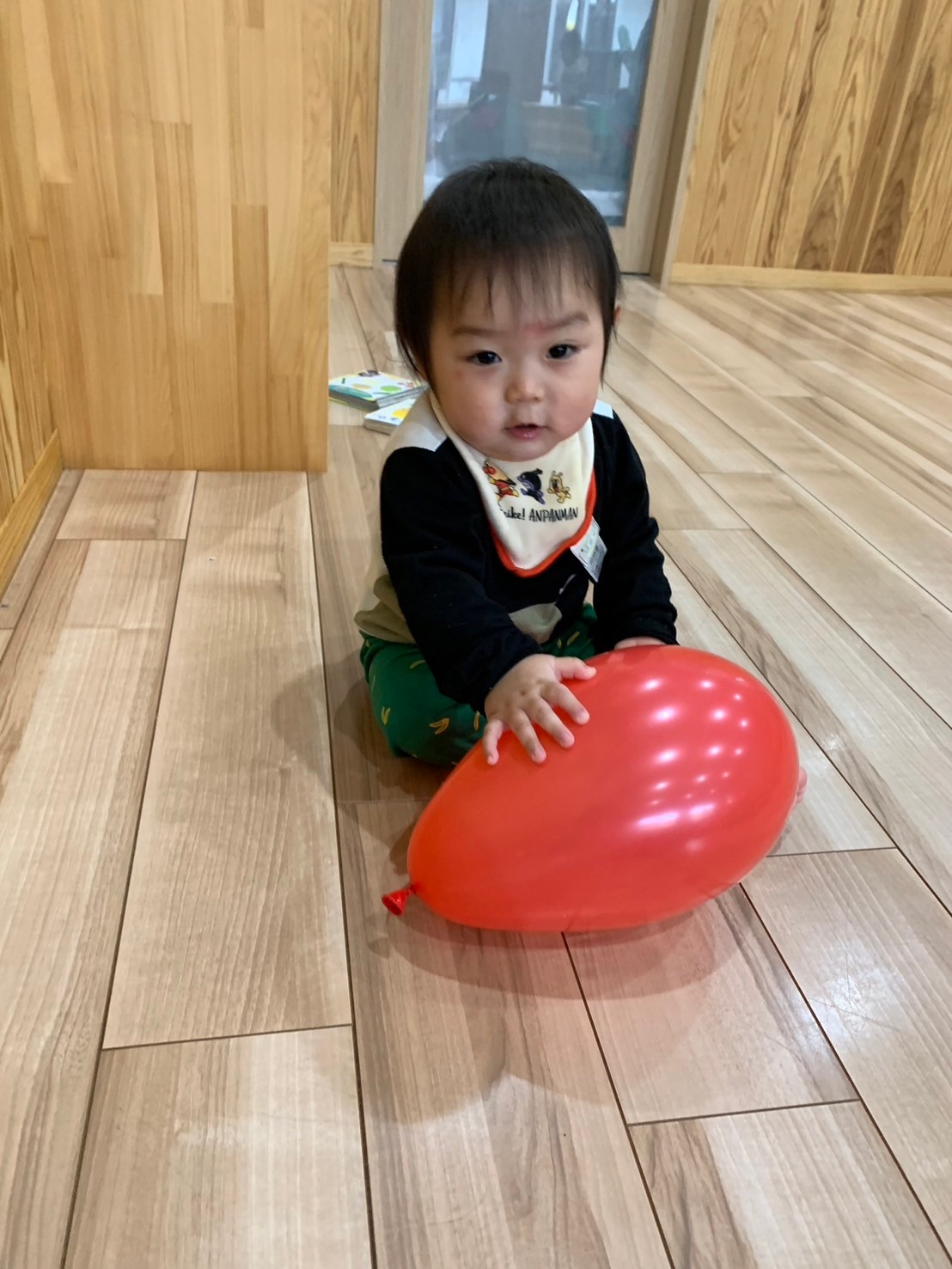 赤や緑の風船を追いかけたり、ギュッと抱きしめて楽しみました💕りす組🐿