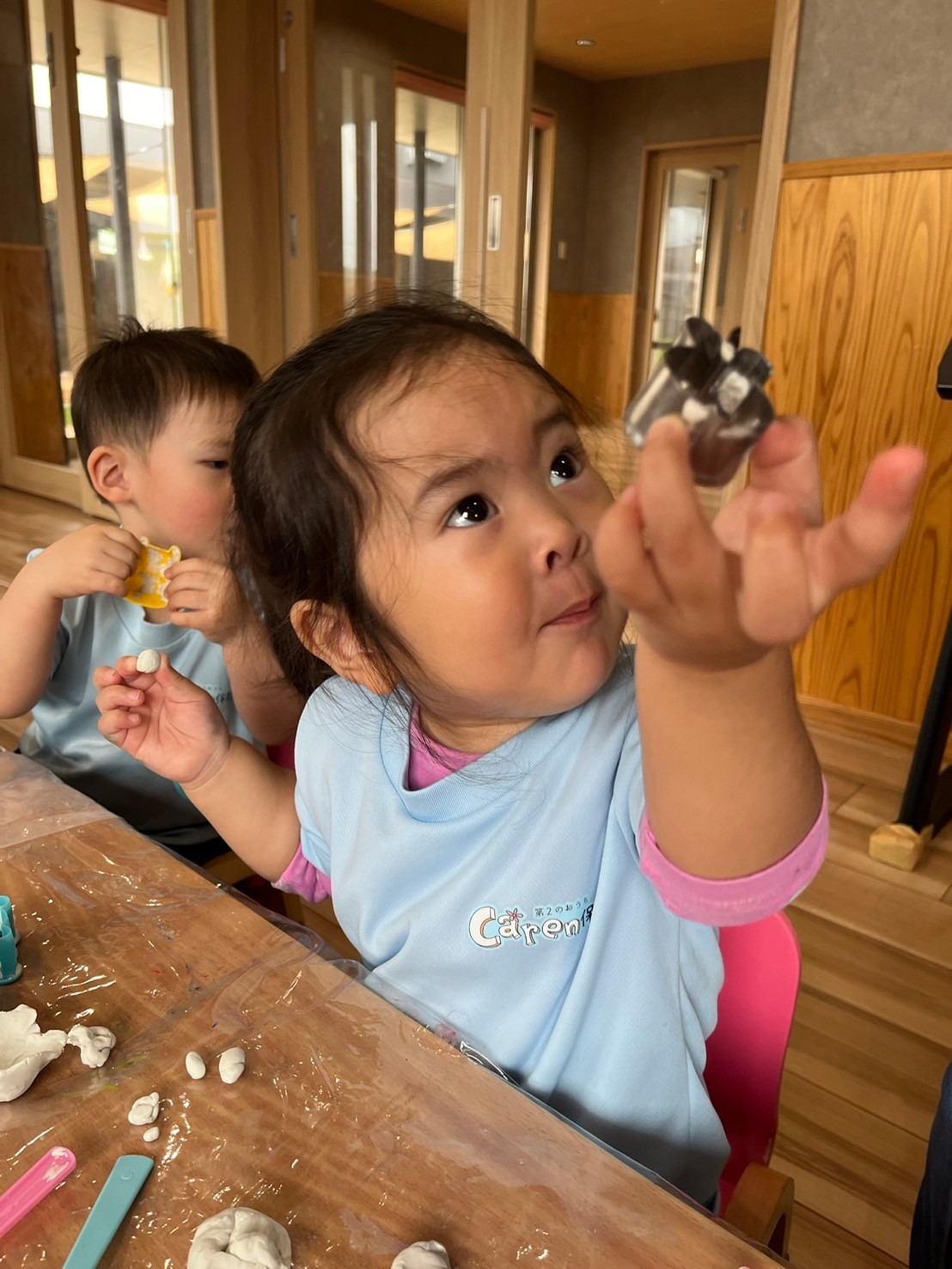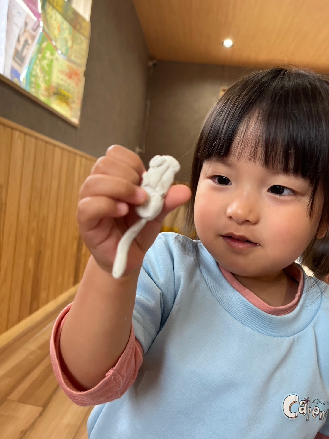 みんなが大好きな粘土でも遊びました✨スプーンに乗せて保育者に食べさせてくれたり、小さくちぎってみたりとても集中した時間でした👏🏻✨うさぎ、こあら、きりん組