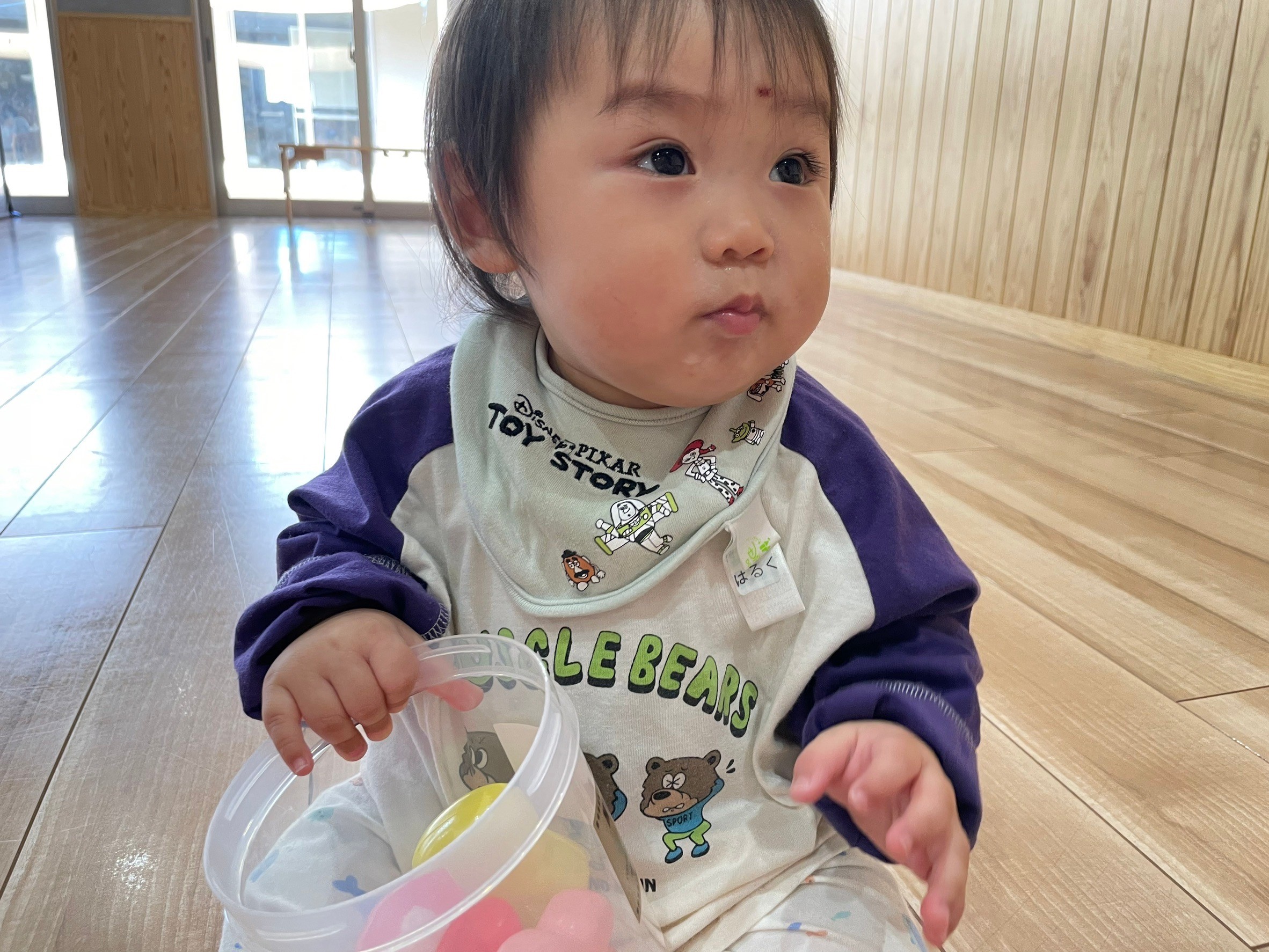 新しいおもちゃを見つけて、興味津々のひよこ組のお友達😊