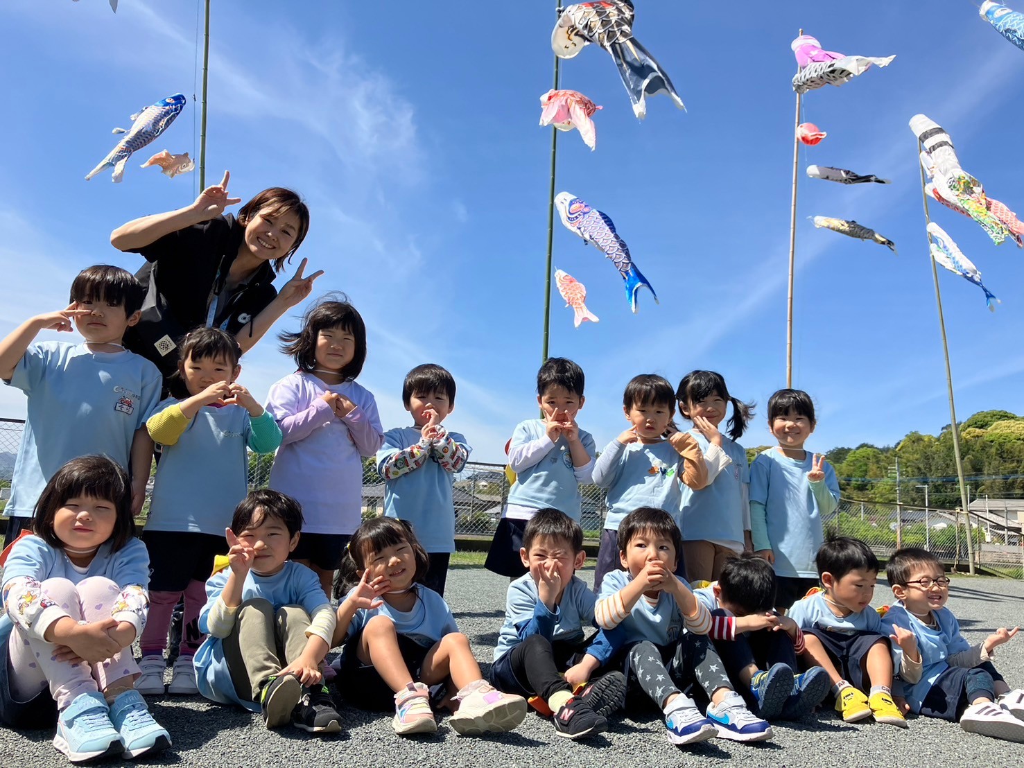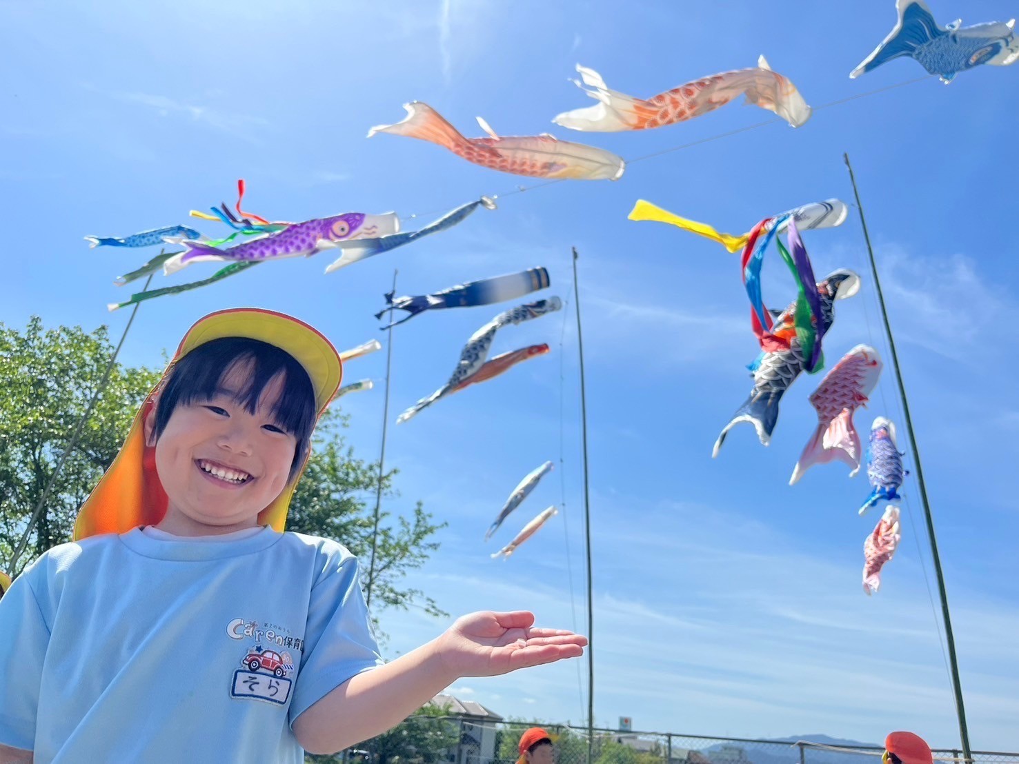 今日は久しぶりのお天気になり☀️みんなが楽しみにしていたお散歩に行きました🚶‍♀️。今日は前回行った公民館までたくさん泳いでいる鯉のぼり🎏見に行きました。