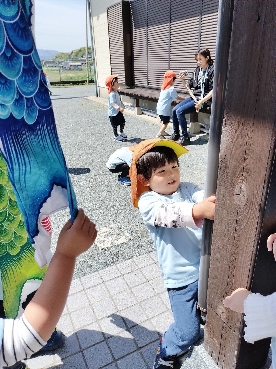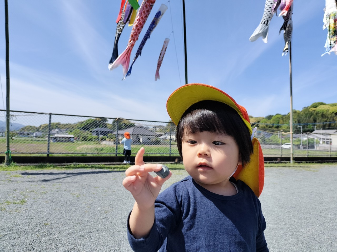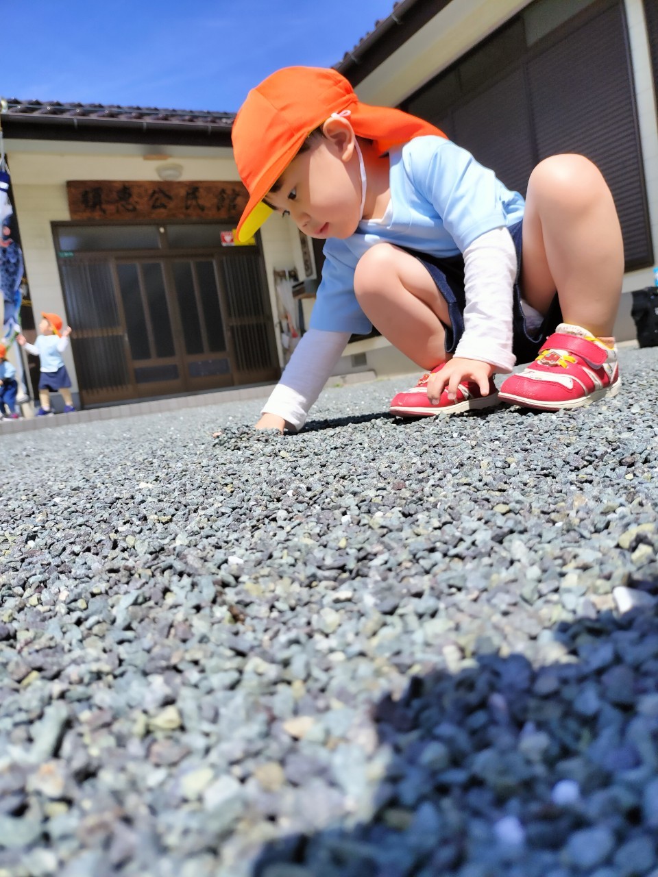 公民館に着くと以上児さんもいてみんなで追いかけっこをしたり綺麗な色の石を探したり、鯉のぼりとかくれんぼしたりと存分に散歩を楽しむことができましたよ😃