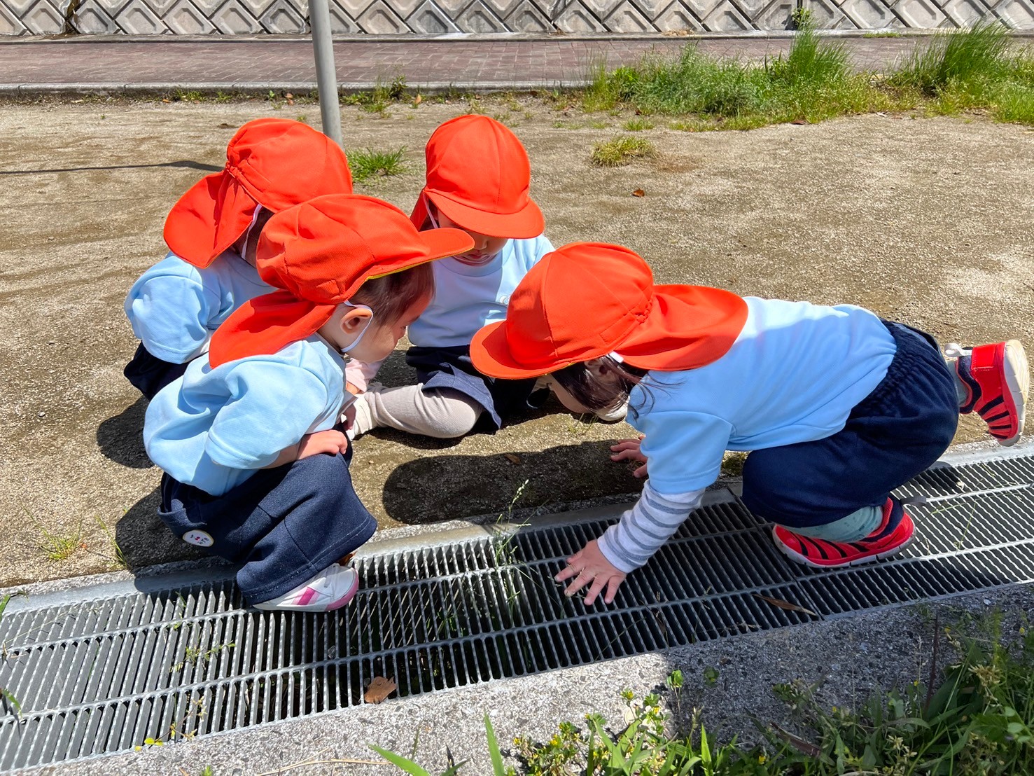 今日は天気がとってもよかったのでくりえいと北公園までお散歩に行きましたよ!行く道中ではこいのぼり、ちょうちょなどを見つける子どもたち☺️たくさんの発見があり、保育者に教えてくれました🤭💕 公園に着いてからもてんとう虫やお花などたくさんの生き物や植物を見つけ興味津々に観察する姿が見られましたよ🥺💖