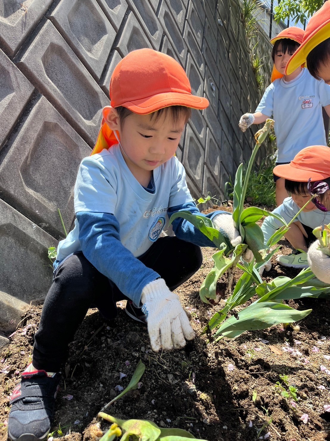 その後は、てくてくロードの花壇の草抜きや、チューリップの球根抜きをしました🌷