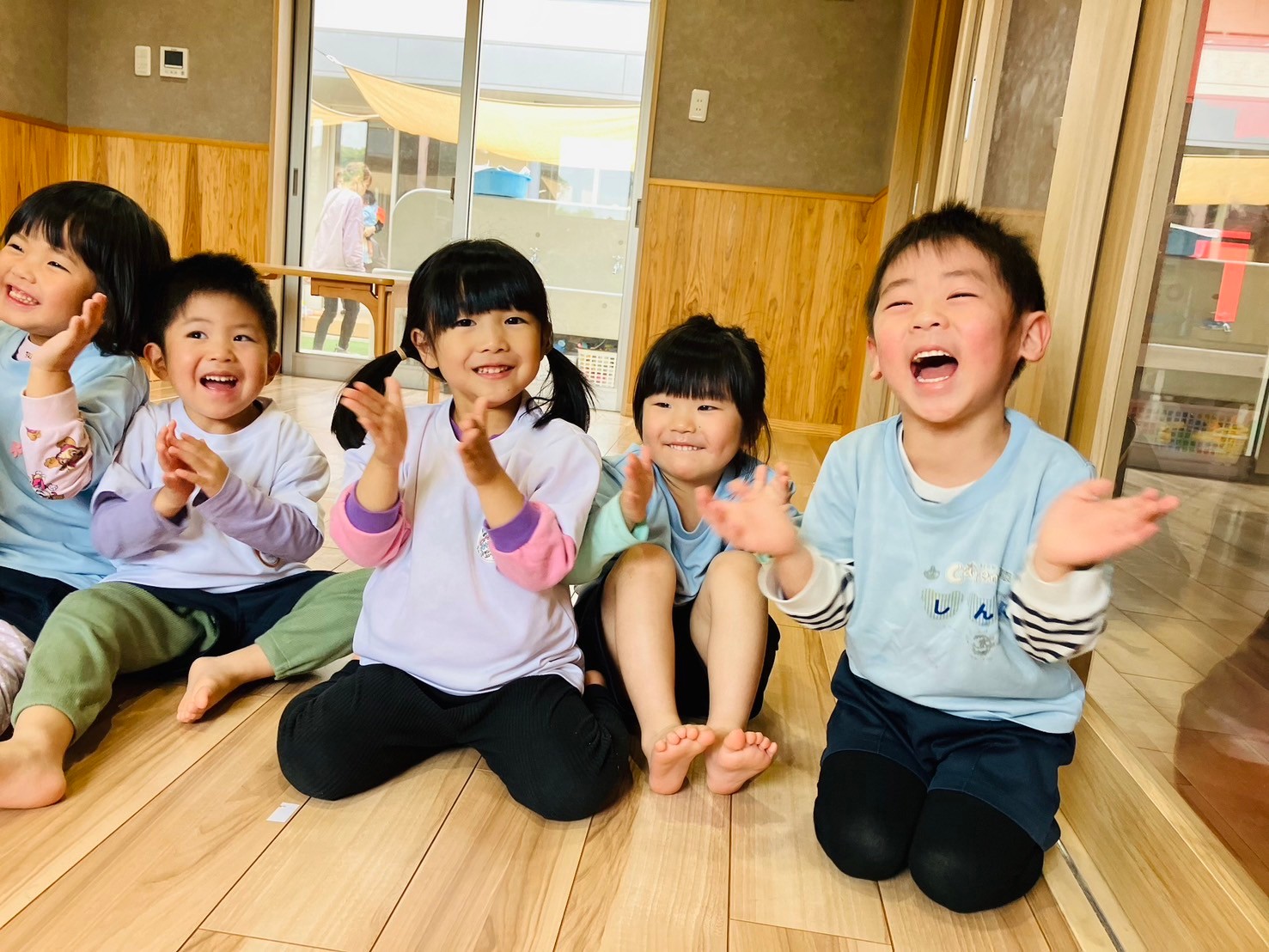 椅子を自分で持っていき片付けた後は順番に座って絵本の読み聞かせを見てから今日は園庭に遊びに行きました!
